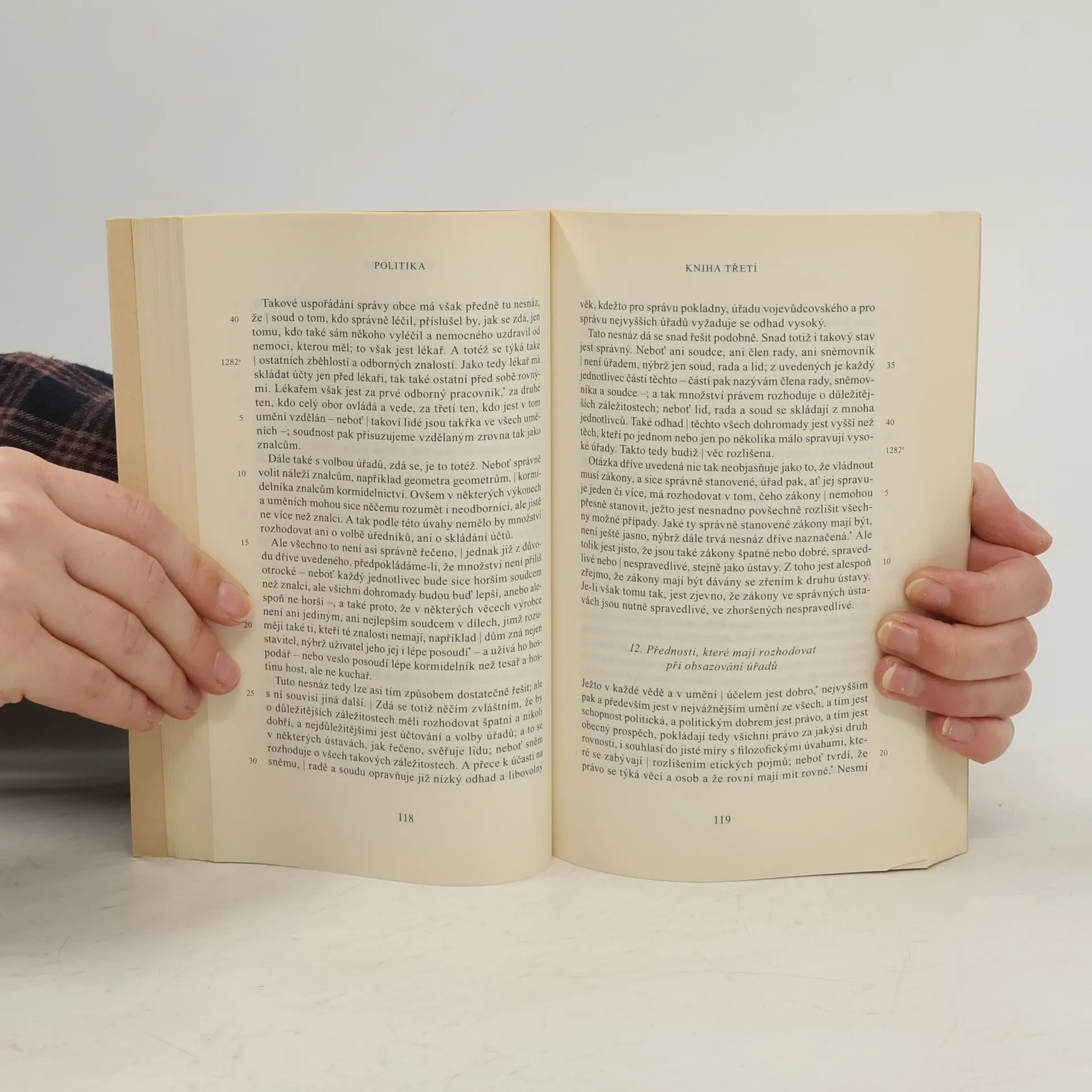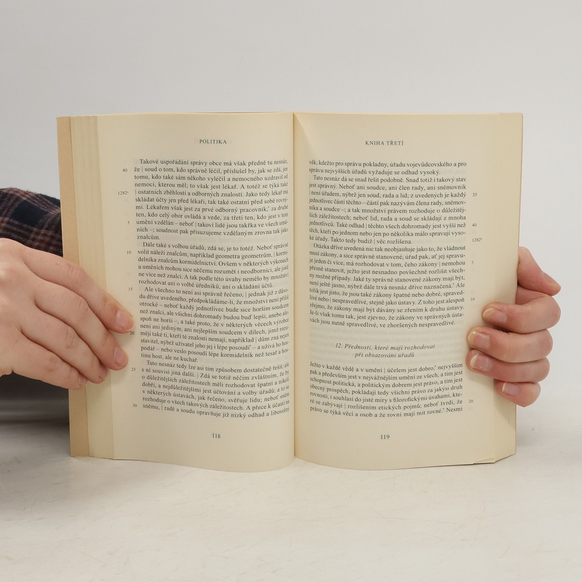Druhý po staletí nejčtenější Aristotelův spis se svým výkladem života v obci a jeho předpokladů, druhů soužití dle jednotlivých ústav, jejich proměn a podmínek jejich existence řadí ke klasickým dílům politické a sociální filozofie, politologie a k analýzám přirozeného světa člověka. Jedná se o kapesní vydání bez příloh.