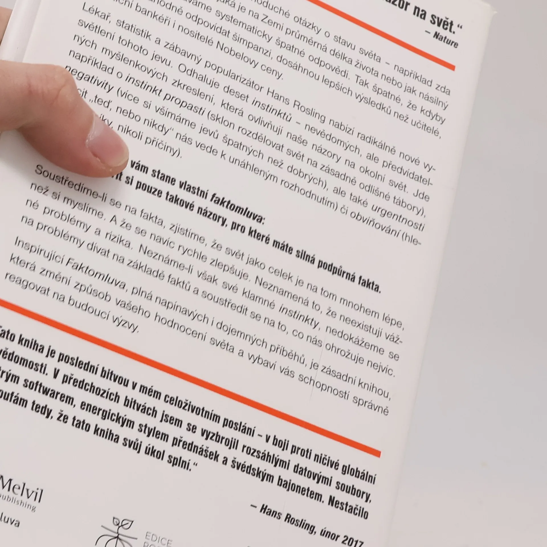 Deset důvodů, proč se mýlíme v pohledu na svět – a proč jsou věci lepší, než vypadají. Máte pocit, že se stav světa zhoršuje anebo se dokonce řítíme do záhuby? Pak patříte k většině, která se mýlí. Budete-li se zajímat o fakta, zjistíte, že je to trochu jinak. Vlastně ne trochu. Je to naopak.