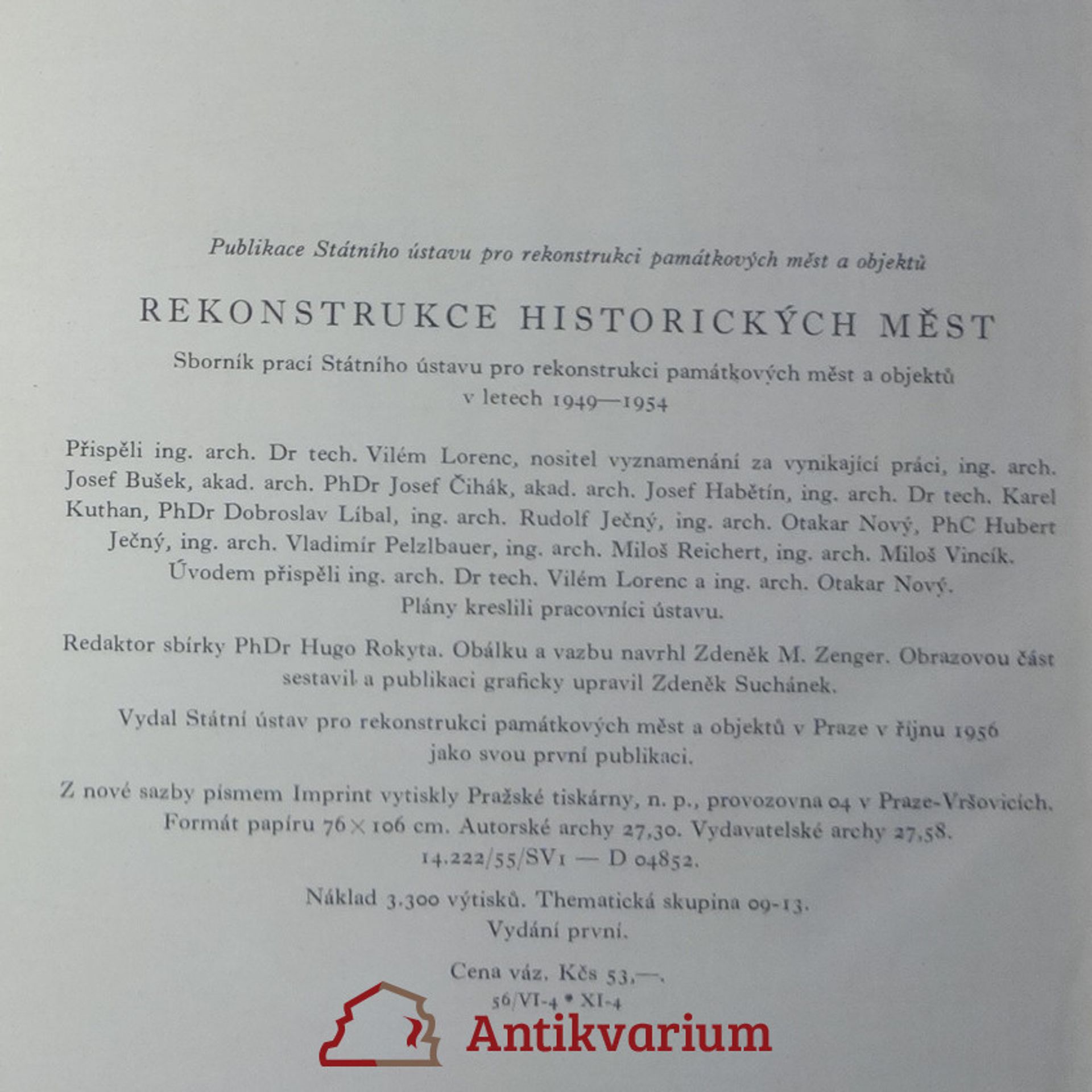 Rekonstrukce historických měst : sborník prací Státního ústavu pro rekonstrukci památkových měst a objektů v letech 1949-1954, Autorenkollektiv