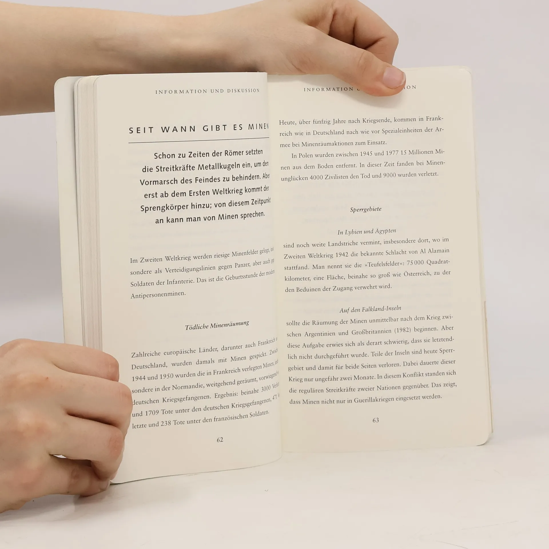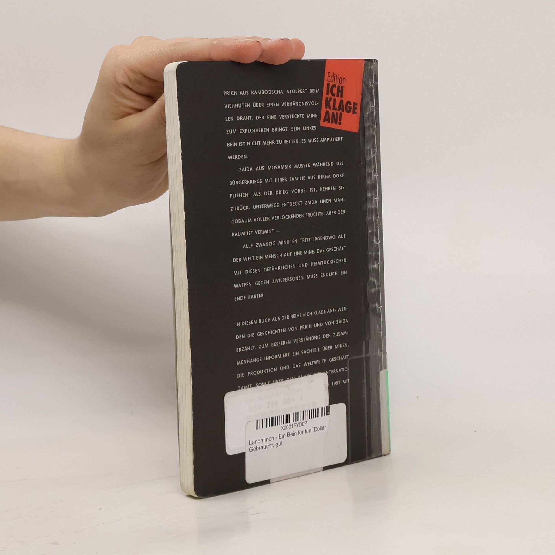 Prich aus Kambodscha stolpert beim Viehhüten und eine Mine explodiert. Sein linkes Bein ist nach diesem Unfall nicht mehr zu retten. Zaida aus Mosambik muss während des Bürgerkriegs mit ihrer Familie fliehen. Nach dem Krieg kehren sie in ihr Dorf zurück. Ein Mangobaum voller verlockender Früchte besiegelt ihr Schicksal, denn er ist vermint. Zusätzlich zu den eindrücklichen Erzählungen über die Auswirkung von Landminen informiert ein Sachteil über Minen, über die Produktion und das weltweite Geschäft damit sowie über internationale Kampagnen, die diesen heimtückischen Waffen den Kampf angesagt haben. (Quelle: Verzeichnis ZKL).