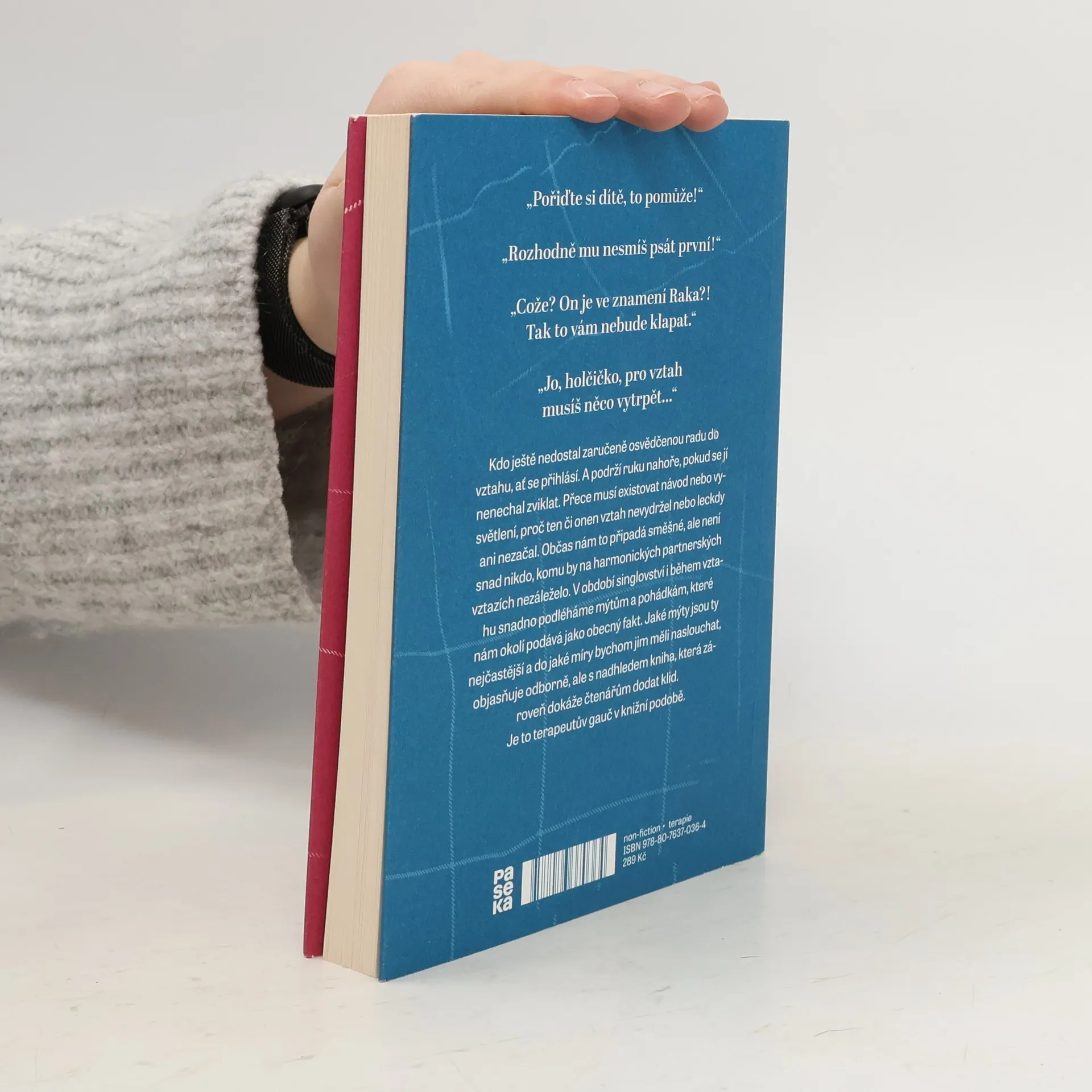 "Pořiďte si dítě, to pomůže!" "Rozhodně mu nesmíš psát první!" "Cože? On je ve znamení Raka?! Tak to vám nebude klapat. "Jo, holčičko, pro vztah musíš něco vytrpět..." Kdo ještě nedostal zaručeně osvědčenou radu do vztahu, ať se přihlásí. A podrží ruku nahoře, pokud se jí nenechal zviklat. Přece musí existovat návod nebo vysvětlení, proč ten či onen vztah nevydržel nebo leckdy ani nezačal. Občas nám to připadá směšné, ale není snad nikdo, komu by na harmonických partnerských vztazích nezáleželo. V období singlovství i během vztahu snadno podléháme mýtům a pohádkám, které nám okolí podává jako obecný fakt. Jaké mýty jsou ty nejčastější a do jaké míry bychom jim měli naslouchat, objasňuje odborně, ale s nadhledem kniha, která zároveň dokáže čtenářům dodat klid. Je to terapeutův gauč v knižní podobě.