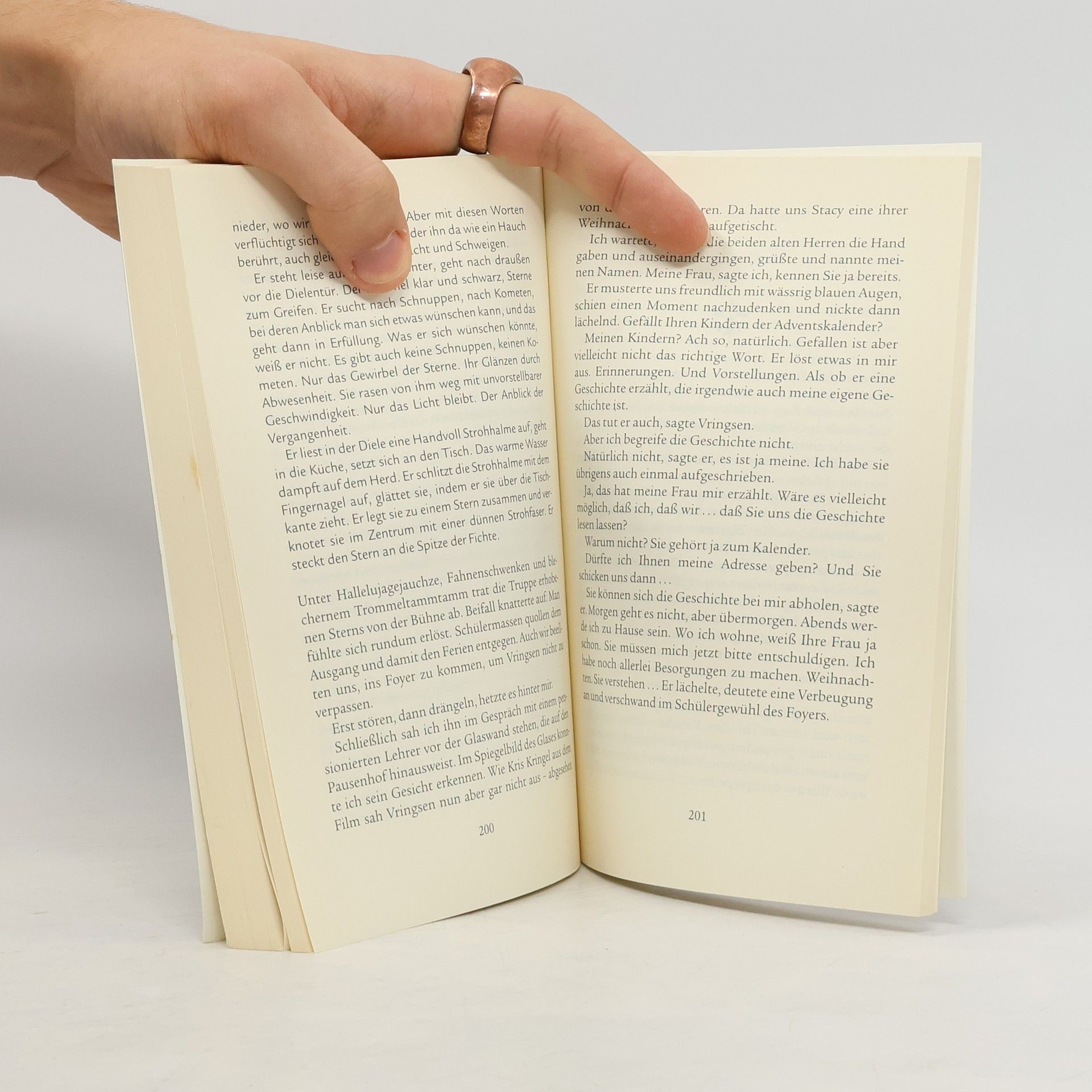 Ein klug konstruierter Roman. Süddeutsche Zeitung Im Haus des Erzählers geht es in der Vorweihnachtszeit turbulent zu: Seine beiden Töchter kommen langsam in das Alter, in dem Weihnachtswünsche teuer werden und Familienrituale an Kraft verlieren. Doch der Adventskalender, den die Mutter von einem alten Mann geschenkt bekommt, fesselt die Aufmerksamkeit der ganzen Familie. Er erzählt auf vierundzwanzig Bildern eine faszinierende Geschichte aus der Nachkriegszeit: Drei Männer stehlen zwei Worpsweder Gemälde, um damit den Kauf von Heizmaterial und Lebensmitteln zu finanzieren. Ein Schneesturm zwingt sie zur Einkehr in einem einsamen Gehöft, wo eine junge Frau in den Wehen liegt.
