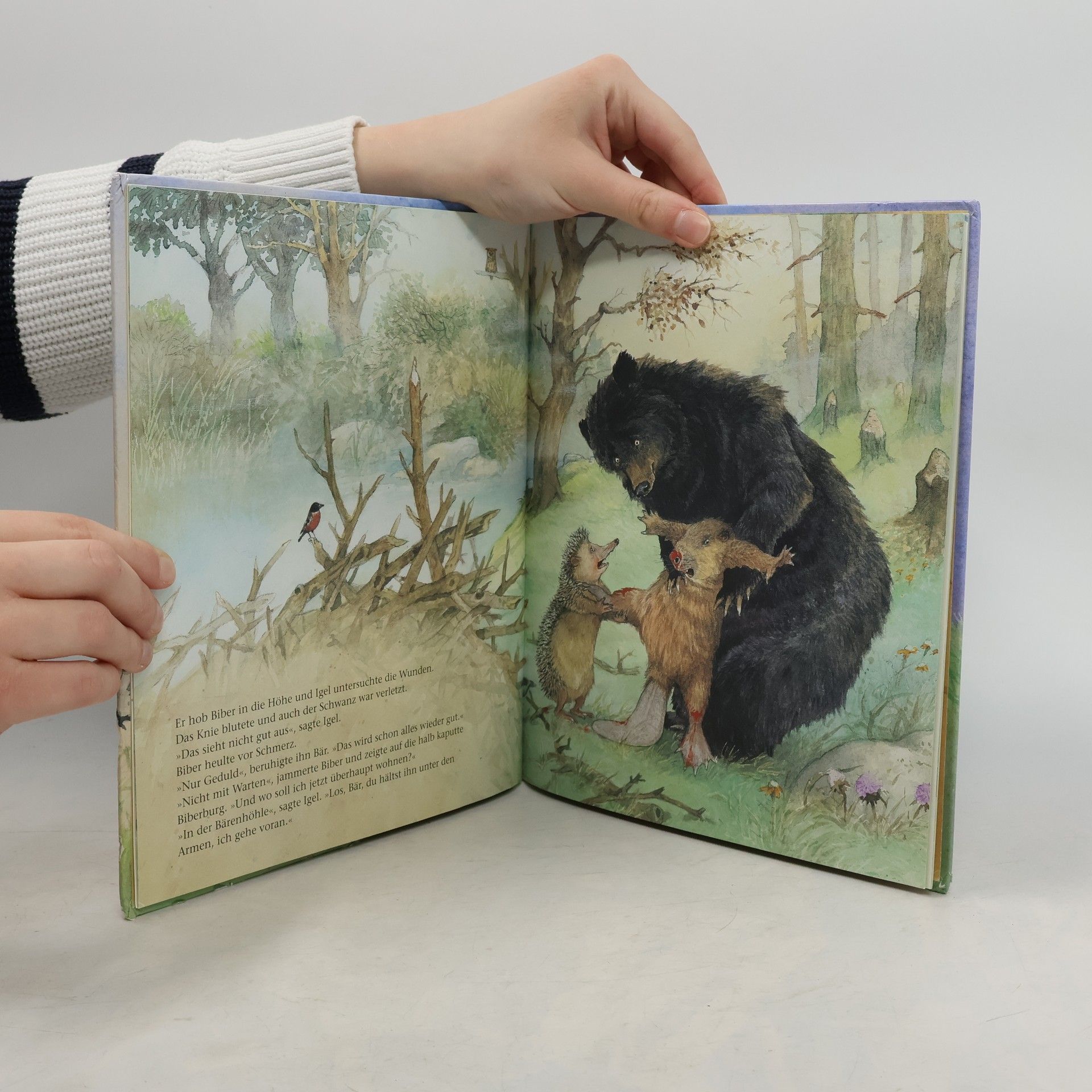 Da sich der Igel verletzt hat, eilen ihm seine Freunde Igel und Bär zu Hilfe. Beim Flicken der Biberburg vergessen die beiden aber etwas ganz Wichtiges!