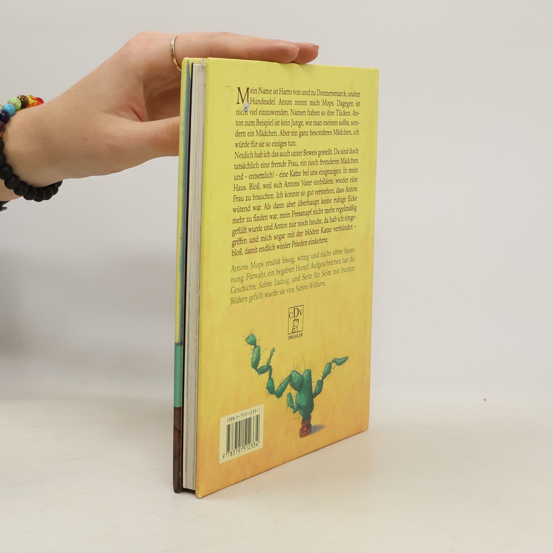 „Mein Name ist Harro von und zu Donnersmarck, uralter Hundeadel. Anton nennt mich Mops. Dagegen ist nicht viel einzuwenden, Namen haben so ihre Tücken. Anton z. B. ist kein Junge, wie man meinen sollte, sondern ein Mädchen. Aber ein ganz besonderes Mädchen, ich würde für sie so einiges tun. Neulich hab ich das auch unter Beweis gestellt. Da sind doch tatsächlich eine fremde Frau, ein noch fremderes Mädchen und - entsetzlich! - eine Katze bei uns eingezogen. In mein Haus. Bloß weil sich Antons Vater einbildete, wieder eine Frau zu brauchen. Ich konnte so gut verstehen, dass Anton wütend war. Als dann aber überhaupt keine ruhige Ecke mehr zu finden war, mein Fressnapf nicht mehr regelmäßig gefüllt wurde und Anton nur noch heulte, da hab ich eingegriffen und mich sogar mit der blöden Katze verbündet - bloß, damit endlich wieder Frieden einkehrte.“ Antons Mops erzählt bissig, witzig und spannend. Fürwahr, ein begabter Hund! Aufgeschrieben hat die Geschichte Sabine Ludwig, Seite für Seite mit bunten Bildern gefüllt wurde sie von Sabine Wilharm, die in den letzten Jahren als Illustratorin immer wieder für Aufsehen sorgte.
