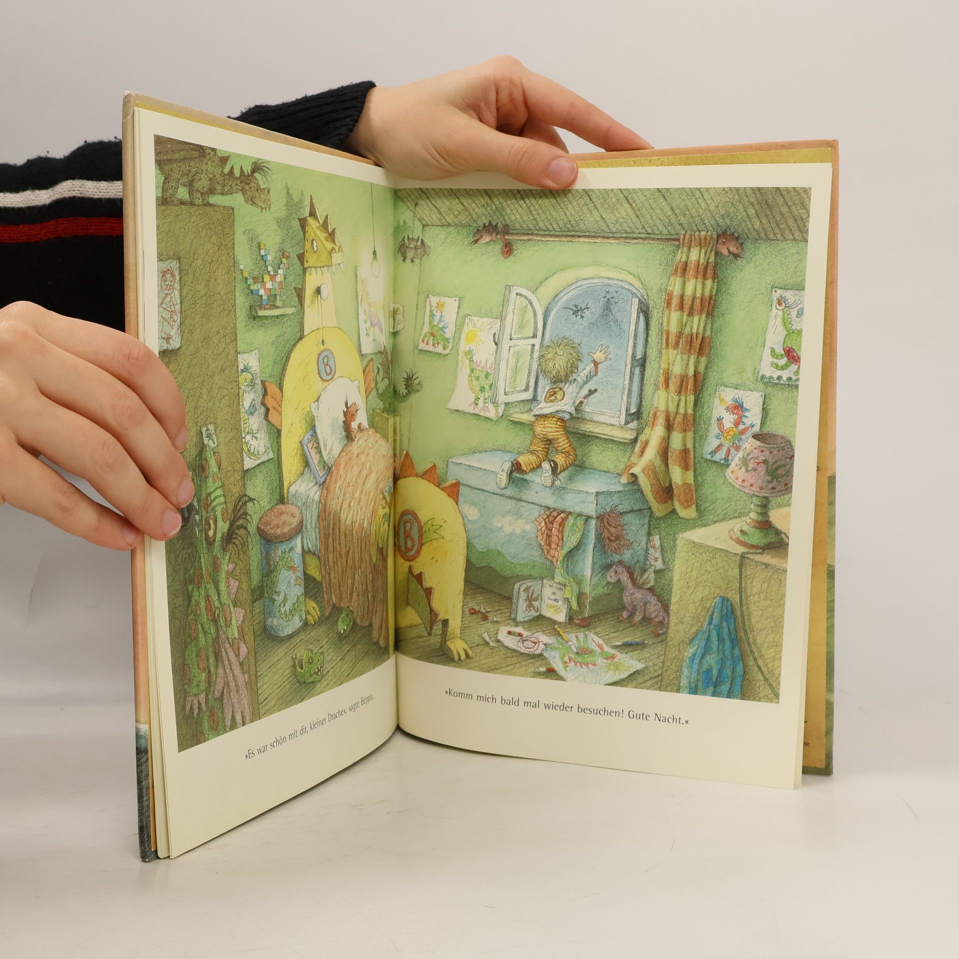 In der zauberhaften Erzählung „Kleiner, schrecklicher Drache“ von Lieve Baeten begegnen wir einem jungen Drachen, der furchteinflößend wirken möchte. Um ihm zu helfen, stellt seine Mutter ihm ein Menschenkind als Übungsobjekt für sein Schreckenstraining zur Seite, überzeugt davon, dass Menschenkinder leicht zu erschrecken sind. Doch die Begegnung verläuft anders als erwartet: Statt Angst herrschen Neugier und eine unerwartete Freundschaft. Baetens' Geschichte spielt geschickt mit den Klischees von Furcht und Mut und zeigt, dass wahre Stärke in Empathie und dem Mut zur Freundschaft liegt. Die liebevoll gestalteten Illustrationen fangen jedes Detail ein und machen das Buch zu einem lebendigen Leseerlebnis, das Kinderherzen höher schlagen lässt und wichtige Werte vermittelt. Es fördert Empathie und Freundschaft und bringt Kindern die Bedeutung von Mut und das Überwinden von Vorurteilen nahe. Ideal für Kinder ab 3 Jahren, ist es perfekt für Kindergarten-, Vorschul- und Grundschulkinder. Die spannende Geschichte bietet pädagogischen Wert und regt die Fantasie an, während sie Kinder dazu motiviert, über Freundschaft und Mut nachzudenken. Das Buch hat positive Resonanz von Kritikern und Lesern erhalten und ist eine wertvolle Bereicherung für jede Kinderbuchsammlung sowie ein wunderbares Geschenk.