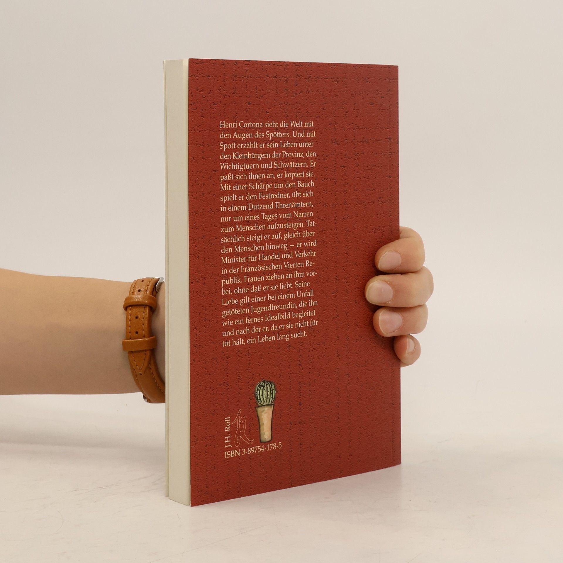 Henri Cortona sieht die Welt mit den Augen des Spötters. Und mit Spott erzählt er sein Leben unter den Kleinbürgern der Provinz, den Wichtigtuern und Schwätzern. Er paßt sich ihnen an, er kopiert sie. Mit einer Schärpe um den Bauch spielt er den Festredner, übt sich in einem Dutzend Ehrenämtern, nur um eines Tages vom Narren zum Menschen aufzusteigen. Tatsächlich steigt er auf, gleich über den Menschen hinweg — er wird Minister für Handel und Verkehr in der Französischen Vierten Republik. Frauen ziehen an ihm vorbei, ohne daß er sie liebt. Seine Liebe gilt einer bei einem Unfall getöteten Jugendfreundin, die ihn wie ein fernes Idealbild begleitet und nach der er, da er sie nicht für tot hält, ein Leben lang sucht.