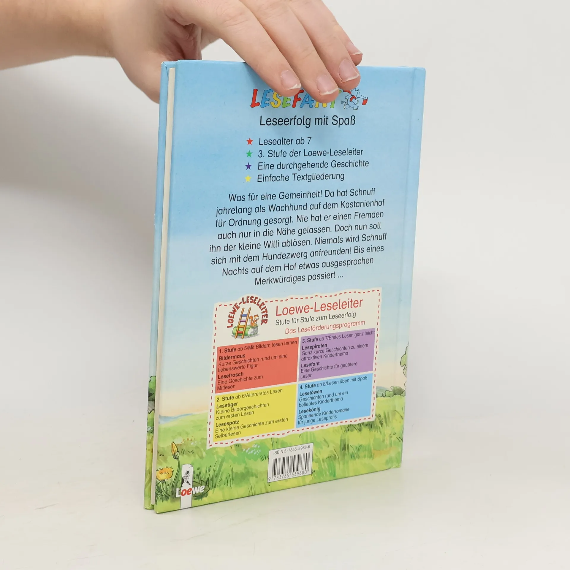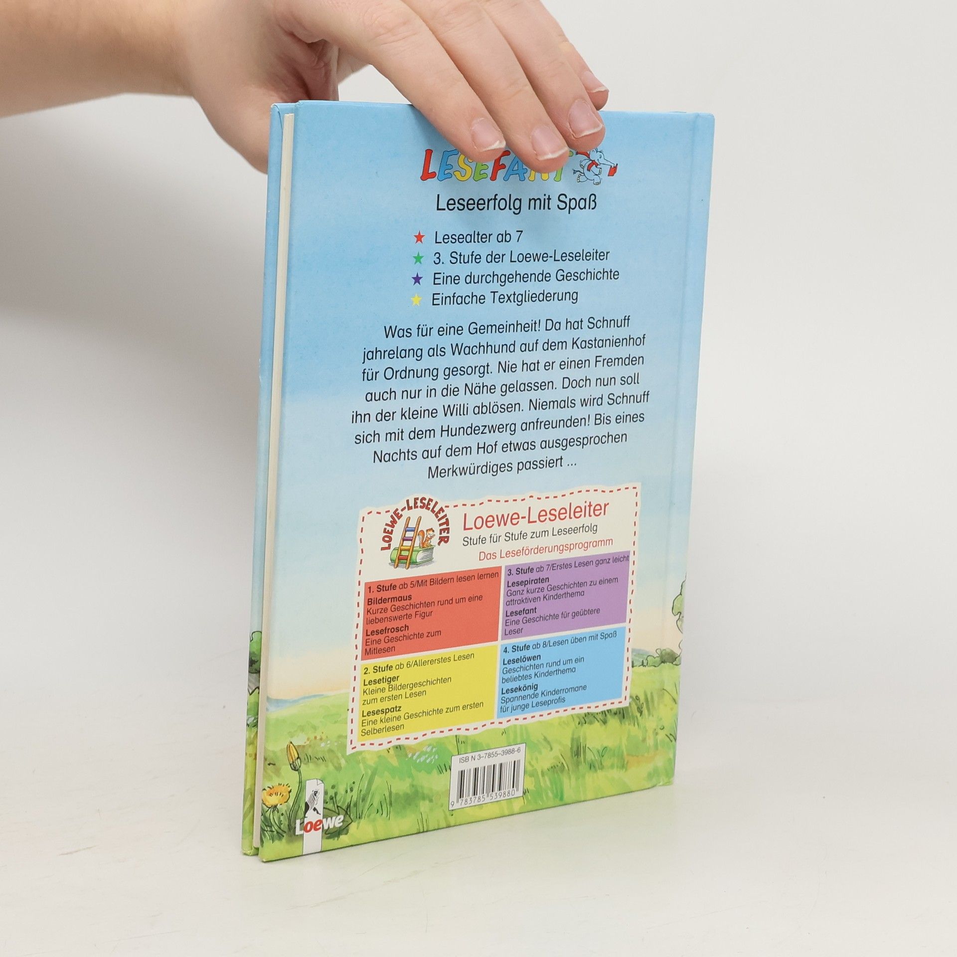 Lesealter ab 7 3. Stufe der Loewe-Leseleiter Eine durchgehende Geschichte Einfache Textgliederung Was für eine Gemeinheit! Da hat Schnuff jahrelang als Wachhund auf dem Kastanienhof für Ordnung gesorgt. Nie hat er einen Fremden auch nur in die Nähe gelassen. Doch nun soll ihn der kleine Willi ablösen. Niemals wird Schnuff sich mit dem Hundezwerg anfreunden! Bis eines Nachts auf dem Hof etwas ausgesprochen Merkwürdiges passiert.