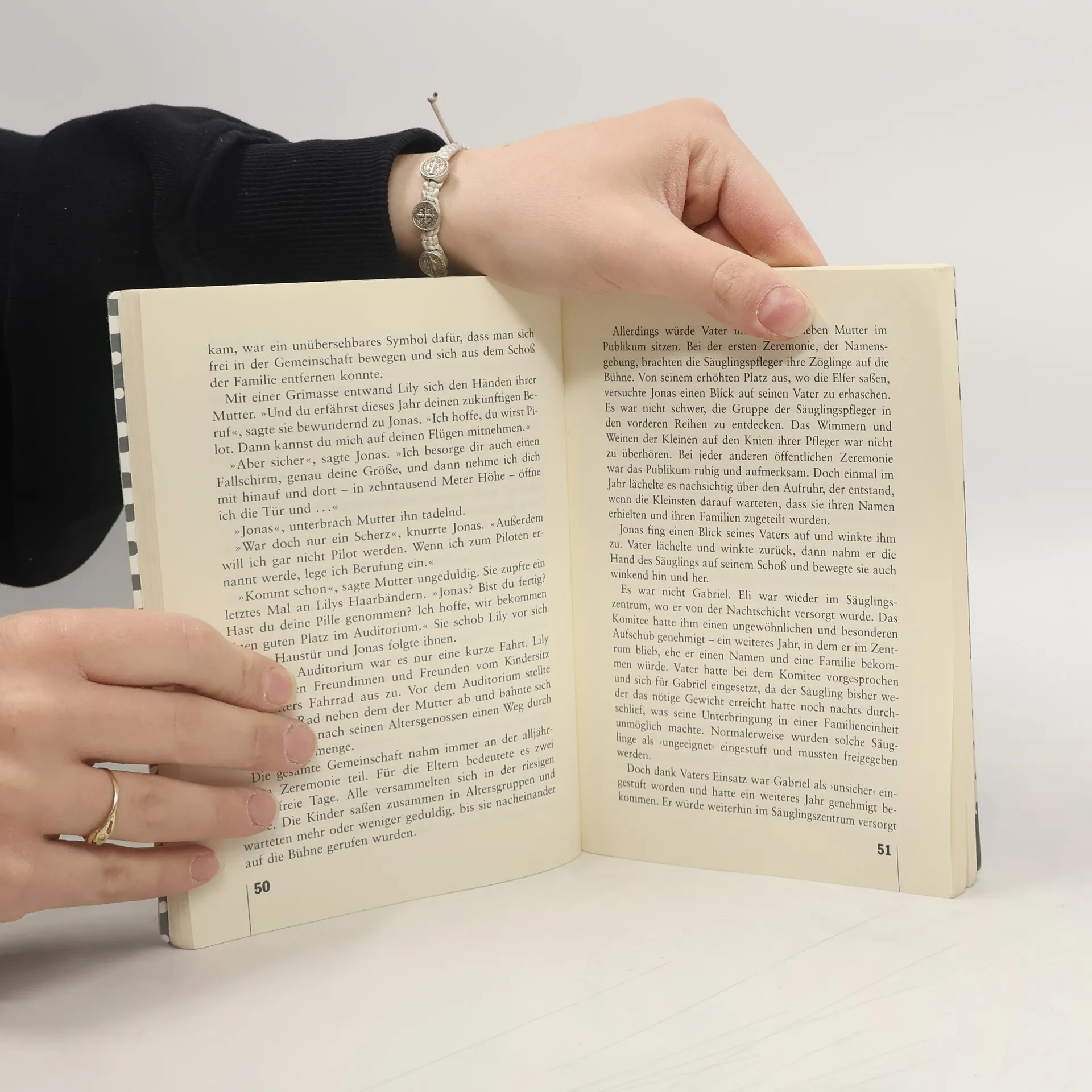 Jonas lebt in einer Welt, in der es keine Kriege mehr gibt, keine Verbrechen und keine Angst mehr. Jeder lebt wohlbehütet ein bis ins kleinste geregeltes Leben. Alle sind glücklich und zufrieden. Nun lernt Jonas im Zuge seiner Ausbildung zum "Hüter der Erinnerung" die Lebensform seiner Vorfahren kennen, hört von Tod, Gewalt, Schmerz, aber auch von Freundschaft und Liebe. Plötzlich hat er Zweifel, ob die Entscheidung, Selbstbestimmung, Freiheit und Gefühle zugunsten von Sicherheit, Zweckmäßigkeit und Schmerzfreiheit aufzugeben, richtig war... Eine äußerst spannende Zukunftsvision.