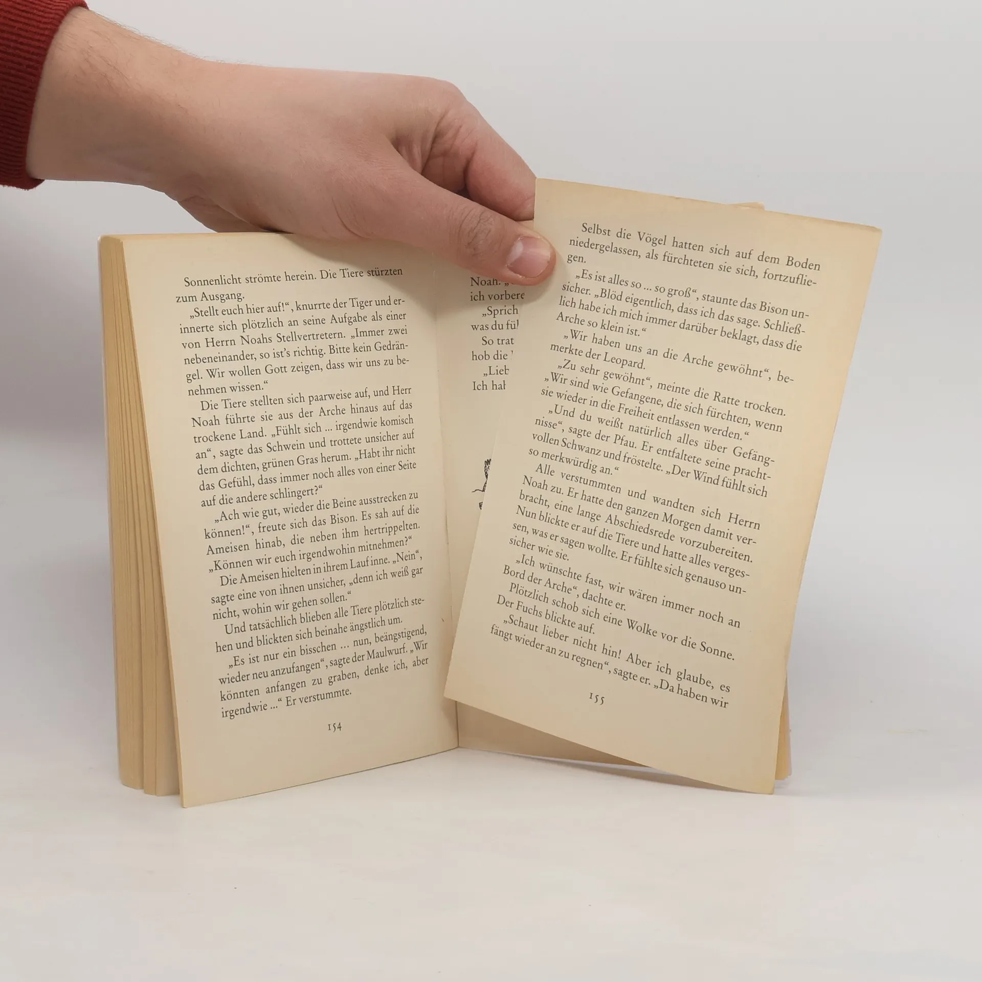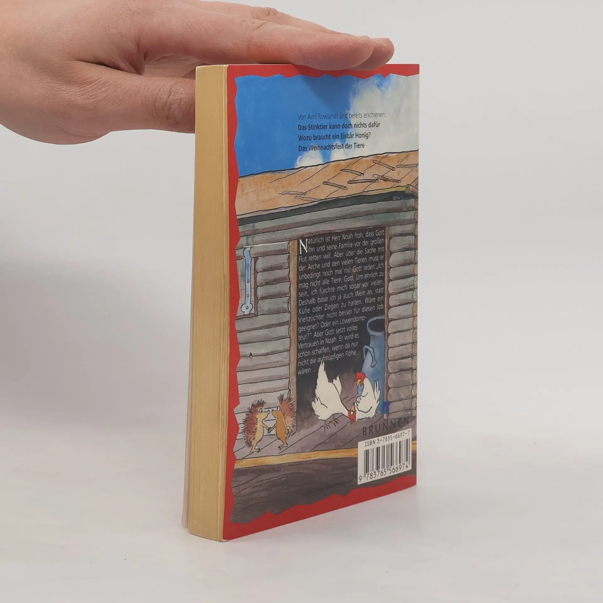 Natürlich freut sich Herr Noah darüber, dass Gott ihn und seine Familie vor der großen Flut retten will. Doch über die Sache mit der Arche und den vielen Tieren muss er unbedingt noch mal mit Gott reden. „Ich mag nicht alle Tiere, Gott. Um ehrlich zu sein, ich fürchte mich sogar vor vielen. Deshalb baue ich ja auch Wein an, statt Kühe oder Ziegen zu halten. Wäre ein Viehzüchter nicht besser für diesen Job geeignet? Oder ein Löwendompteur?" Aber Gott setzt volles Vertrauen in Noah. Er wird es schon schaffen, auf einem schwankenden Schiff mit Füchsen, Hühnern, Ochsen, Emus, Tigern und Co. zurechtzukommen. Wenn da nur nicht diese aufmüpfigen Flöhe wären. 13 neue Geschichten erzählen amüsant und hintergründig, wie es auf der Arche zugegangen sein könnte. Von Avril Rowlands sind bereits erschienen: Das Stinktier kann doch nichts dafür Wozu braucht ein Eisbär Honig? Das Weihnachtsfest der Tiere