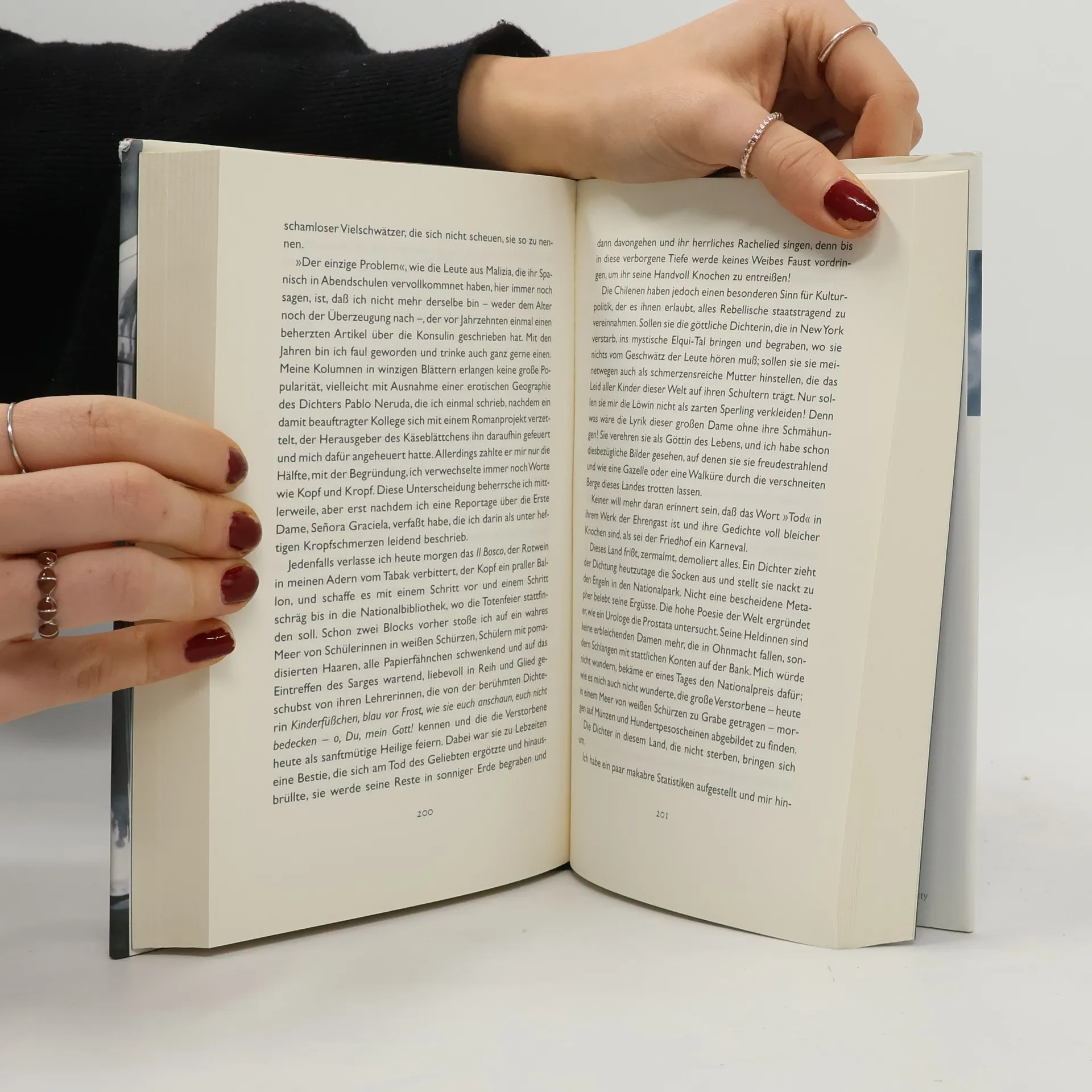 Aus dem chilenischen Spanisch übersetzt von Willi Zerbrüggen. "Das erste, was dich die Leute fragen, ist, wie deine Eltern heißen. Und wenn du ihre Namen nicht weißt, dann sagen sie, du Ärmste, so ein reizendes Ding, und so blaue Augen, und alles." Magdalena ist Vollwaise, denn ihre Eltern sind von den Nazis umgebracht worden. Irgendwie landet sie an einem Dezembertag im Jahre 1944 in Begleitung eines Posaunisten in der chilenischen Stadt Antofagasta. Hier wird sie liebevoll aufgenommen von Stefano Coppeta, dem Besitzer eines kleinen Gemischtwarenladens. Sie wächst zu einer schönen, aufgeweckten jungen Frau heran, voller Träume und Phantasie. Und ihr größter Traum, der heißt: Amerika. Dort will sie hin, nach New York, wo die Menschen ihr Glück finden. Und dann lernt sie in Santiago Pedro Pablo kennen, der von demselben Wunsch beseelt ist...