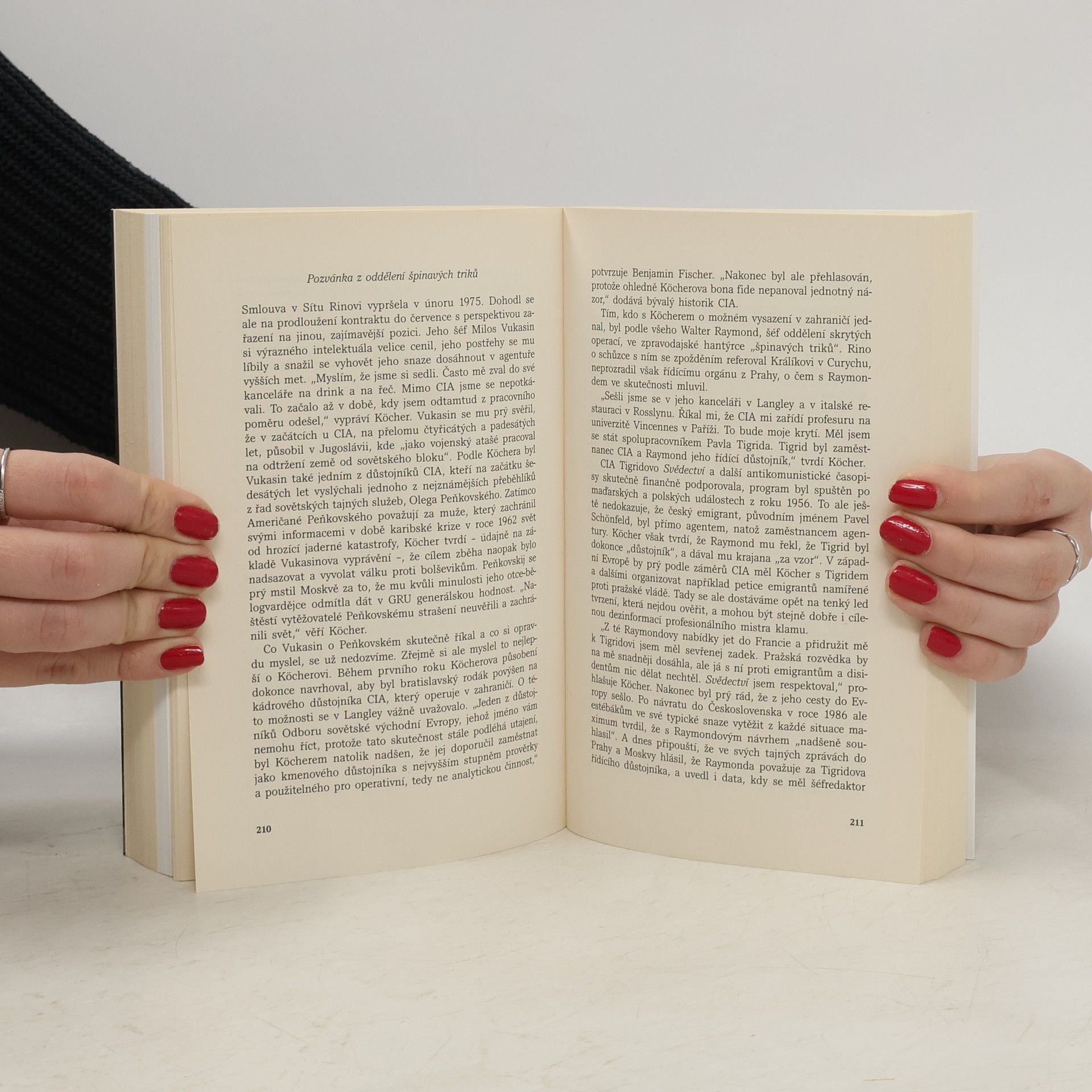 Karel Köcher je jediným špionem z východního bloku, který pronikl do CIA. Jeho příběh, dosud nezaznamenaný v české literatuře faktu, začíná v roce 1965, kdy byl vysazen do USA s úkolem infiltrovat americké zpravodajské služby. Spolu se svou ženou Hanou získal v USA pověst antikomunisty, pracoval pro Zbigniewa Brzezinského a v roce 1973 mu CIA nabídla místo v jednom z nejtajnějších oddělení. V roce 1984 byli manželé Köcherovi zatčeni FBI, což šokovalo jeho přátele. Jak mohl tento excentrický muž, chovající se opačně než typický agent, být komunistickým špionem? Köcher dostal doživotní trest, ale v roce 1986 byl vyměněn za sovětského disidenta Anatolije Ščaranského. Šéf KGB Vladimir Krjučkov prohlásil, že by za Köchera vyměnil tři Ščaranské. Po návratu do vlasti pracoval v Prognostickém ústavu a dodnes žije v Praze. Jeho bývalí nadřízení si nejsou jisti, pro koho vlastně pracoval. Kniha vznikla na základě rozhovorů autora s Köcherem, který souhlasil s neautorizovaným „životopisem“. Nejde o osobní zpověď, ale o napínavou reportáž konfrontující špionovu výpověď s odtajněnými dokumenty a názory expertů, včetně historika CIA. Autor sledoval Köcherovy stopy v USA a navázal kontakt s důstojníkem KGB. Kniha obsahuje bohatou fotografickou přílohu.
