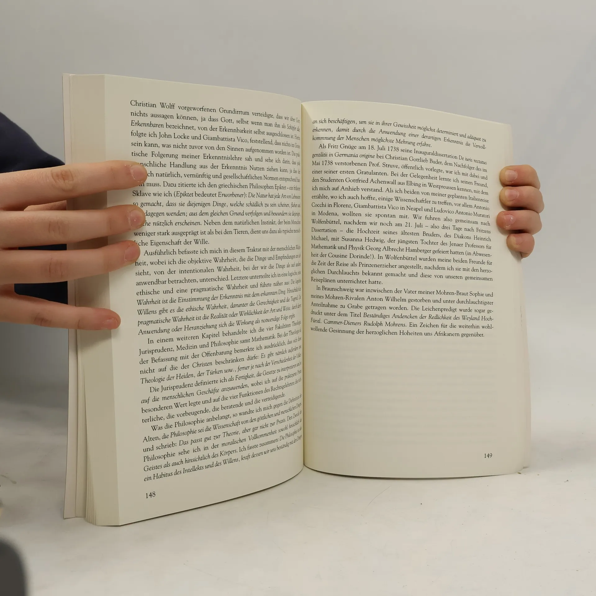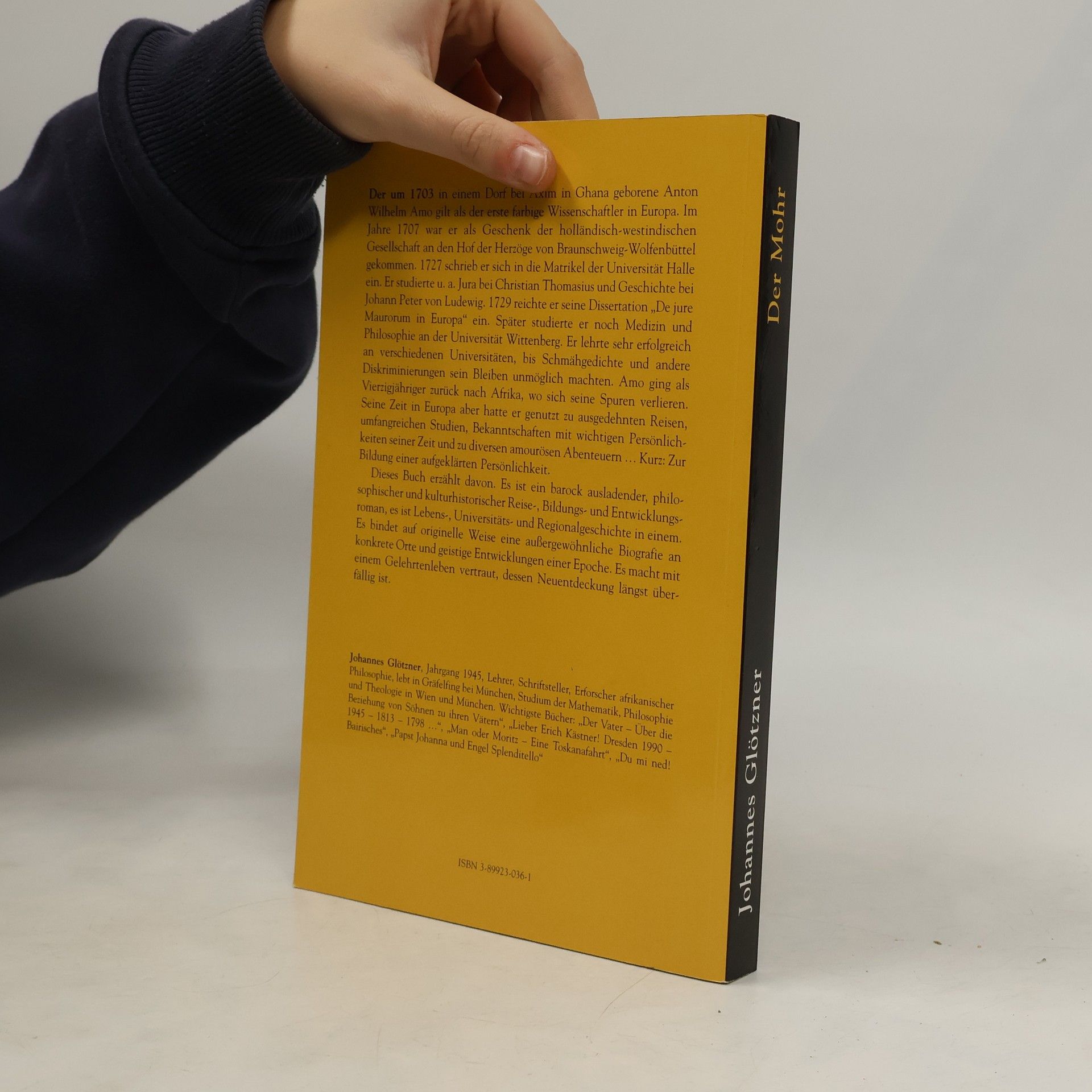 Der um 1703 in einem Dorf bei Axim in Ghana geborene Anton Wilhelm Amo gilt als der erste farbige Wissenschaftler in Europa. Im Jahre 1707 war er als Geschenk der holländisch-westindischen Gesellschaft an den Hof der Herzöge von Braunschweig-Wolfenbüttel gekommen. 1727 schrieb er sich in die Matrikel der Universität Halle ein. Er studierte u. a. Jura bei Christian Thomasius und Geschichte bei Johann Peter von Ludewig. 1729 reichte er seine Dissertation „De jure Maurorum in Europa“ ein. Später studierte er noch Medizin und Philosophie an der Universität Wittenberg. Er lehrte sehr erfolgreich an verschiedenen Universitäten, bis Schmähgedichte und andere Diskriminierungen sein Bleiben unmöglich machten. Amo ging als Vierzigjähriger zurück nach Afrika, wo sich seine Spuren verlieren. Dieses Buch erzählt von Anton Wilhelm Amo. Es ist ein ausladender, philosophischer und kulturhistorischer Reise-, Bildungs- und Entwicklungsroman, Lebens-, Universitäts- und Regionalgeschichte in einem.