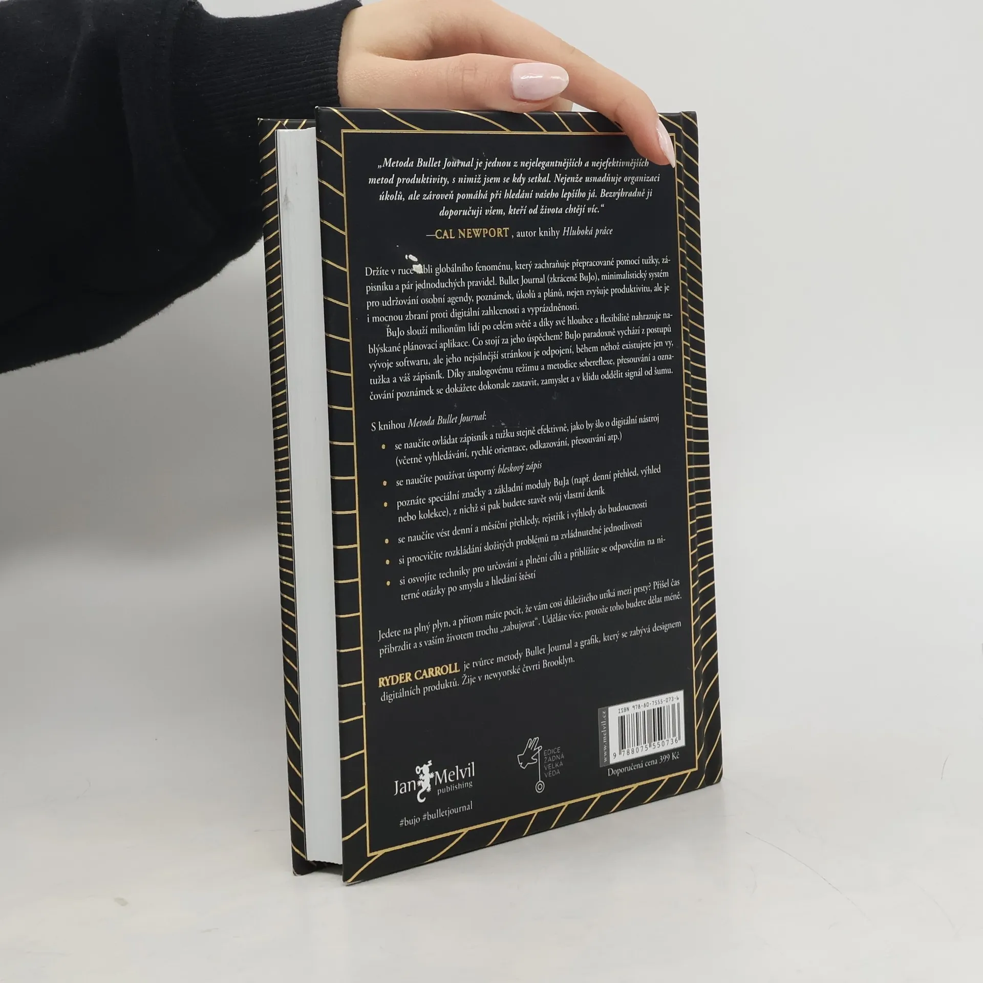 Vítejte ve světě fenoménu Bullet Journal! Tento deník je určen pro frustrované sepisovatele seznamů úkolů, přetížené multitaskery i kreativce, kteří hledají řád. Ryder Carroll vytvořil metodiku Bullet Journal jako řešení své poruchy pozornosti, avšak kouzlo ručního zápisu a systému organizace uchvátilo miliony uživatelů. Kromě přehledného postupu, jak se vypořádat s přívalem úkolů, nabízí i hlubší roviny: zklidnění mysli a schopnost sebereflexe. Naučíte se identifikovat to, co je důležité, oddělovat signál od šumu a žít s vědomím cílů. Bullet Journal vychází z metodik používaných při vývoji softwaru, ale stačí vám zápisník a tužka. Může se stát plánovačem, deníkem, kalendářem, organizátorem či skicákem. Jak se vy vyvíjíte, tak se vyvíjí i váš Bullet Journal. Díky knize se naučíte základy metodiky, typy značek a odrážek, jak psát denní a měsíční přehledy, vytvářet rejstřík a plánovat projekty. Objevíte také, jak dekonstruovat problémy, využít deník vděčnosti a najít smysl a štěstí. Metoda Bullet Journal vám pomůže efektivněji využívat čas a energii, což vám umožní udělat více práce tím, že se zaměříte na méně úkolů. Zasloužíte si to!