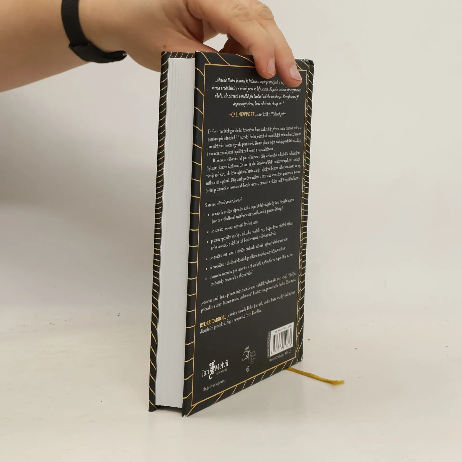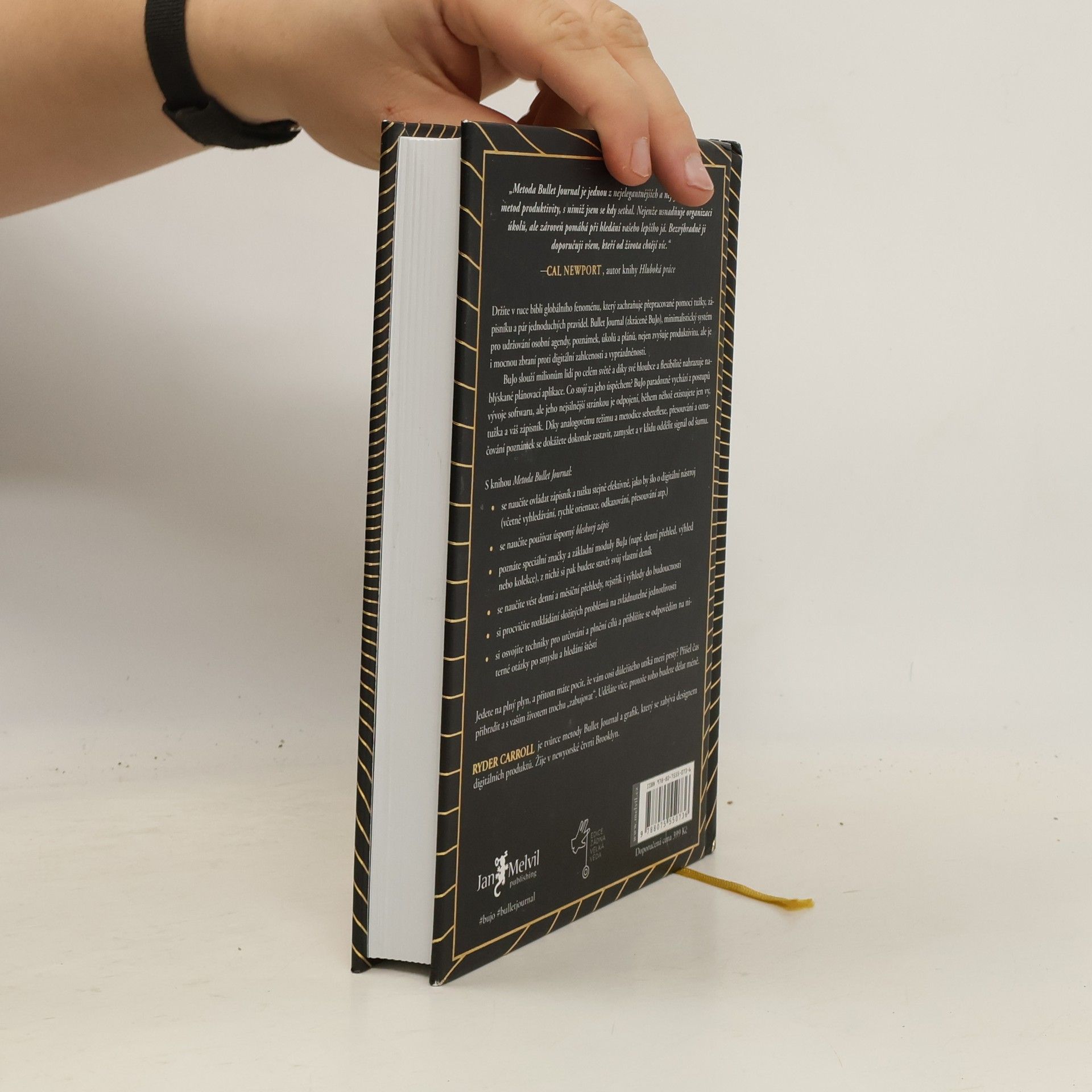 Vítejte ve světě fenoménu Bullet Journal! Tento deník je určen pro frustrované sepisovatele seznamů úkolů, přetížené multitaskery i kreativce, kteří hledají řád. Ryder Carroll vytvořil metodiku Bullet Journal jako řešení své poruchy pozornosti, avšak kouzlo ručního zápisu a systému organizace uchvátilo miliony uživatelů. Kromě přehledného postupu, jak se vypořádat s přívalem úkolů, nabízí i hlubší roviny: zklidnění mysli a schopnost sebereflexe. Naučíte se identifikovat to, co je důležité, oddělovat signál od šumu a žít s vědomím cílů. Bullet Journal vychází z metodik používaných při vývoji softwaru, ale stačí vám zápisník a tužka. Může se stát plánovačem, deníkem, kalendářem, organizátorem či skicákem. Jak se vy vyvíjíte, tak se vyvíjí i váš Bullet Journal. Díky knize se naučíte základy metodiky, typy značek a odrážek, jak psát denní a měsíční přehledy, vytvářet rejstřík a plánovat projekty. Objevíte také, jak dekonstruovat problémy, využít deník vděčnosti a najít smysl a štěstí. Metoda Bullet Journal vám pomůže efektivněji využívat čas a energii, což vám umožní udělat více práce tím, že se zaměříte na méně úkolů. Zasloužíte si to!