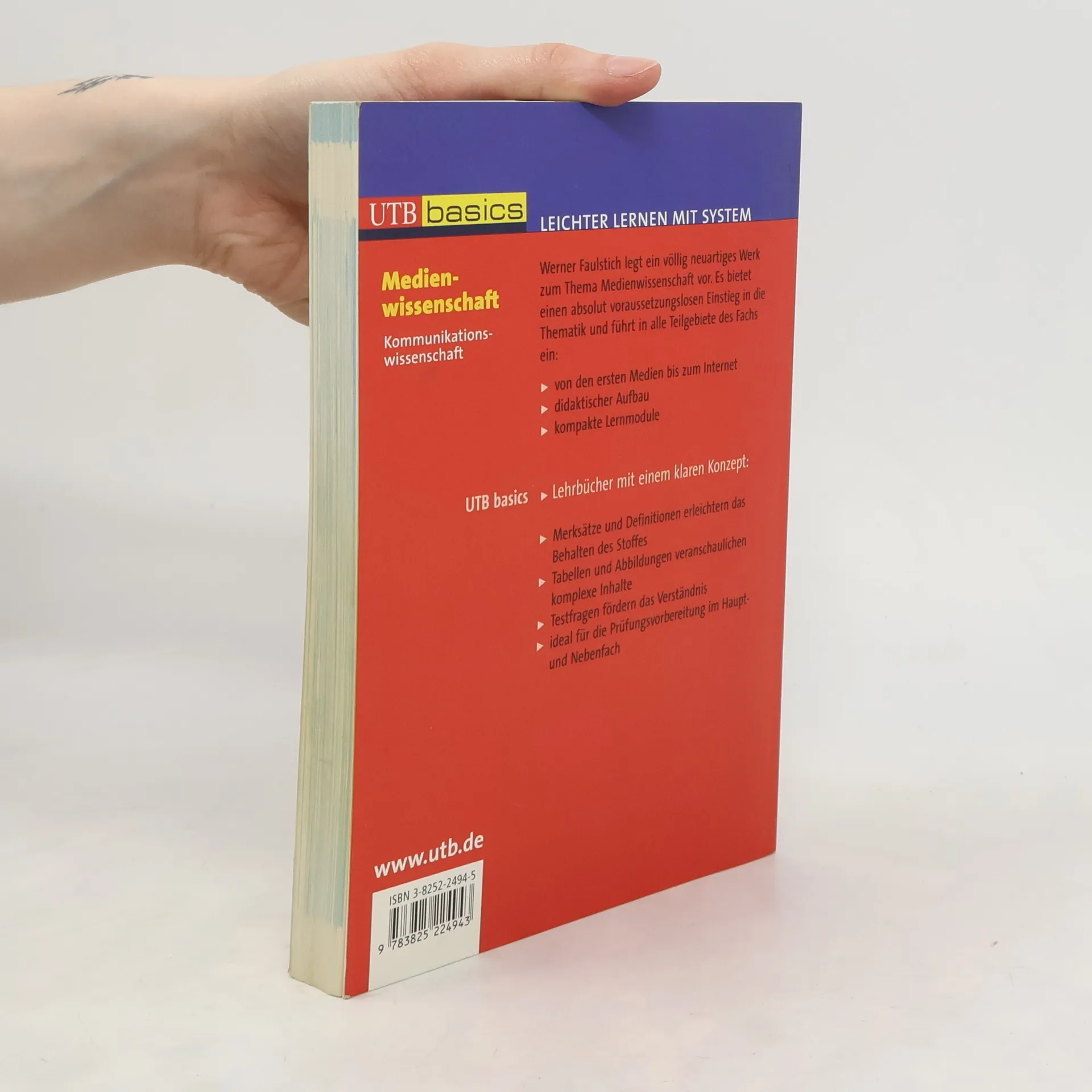 Werner Faulstich legt ein völlig neuartiges Werk zum Thema Medienwissenschaft vor. Es bietet einen absolut voraussetzungslosen Einstieg in die Thematik und führt in alle Teilgebiete des Fachs ein: - von den ersten Medien bis zum Internet - didaktischer Aufbau - kompakte Lernmodule