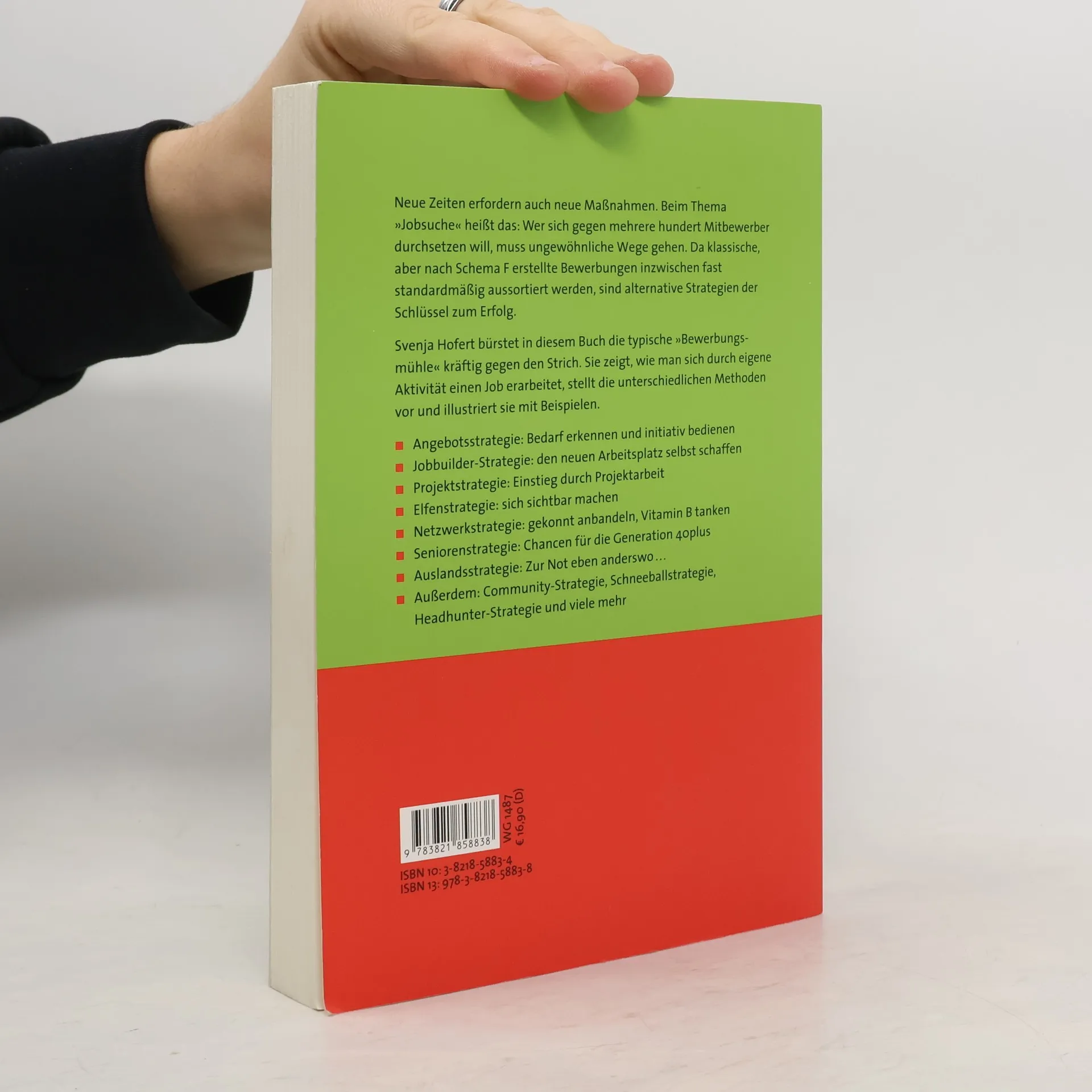 Ungewöhnliche Wege zum neuen Job Svenja Hofert zeigt besondere Methoden und Tricks für die Eroberung eines neuen Arbeitsplatzes - ohne dass man durch die traditionelle Bewerbungsmühle gehen muss. Bei 300 Konkurrenten pro Stelle wird Jobsuche zu einem reinen Lotteriespiel. Da klassische, aber nach Schema F erstellte Bewerbungen inzwischen fast standardmäßig aussortiert werden, sind alternative Strategien der Schlüssel zum Erfolg. Svenja Hofert bürstet in diesem Buch den typischen Bewerbungsweg kräftig gegen den Strich. Sie zeigt, wie man sich durch eigene Aktivität einen Job „erarbeitet“, stellt die unterschiedlichen Methoden vor und illustriert sie mit Fallbeispielen. o Angebotsstrategie: Bedarf erkennen und bedienen o Aufstellungsstrategie: positionieren statt bewerben o Job-Builder-Strategie: den neuen Arbeitsplatz selbst schaffen o Projekt-Strategie: Einstieg durch Projektarbeit o Multiplikatoren-Strategie: durch Verbündete zum neuen Job o Beziehungs-Strategie: Vitamin B, aber richtig o u. v. m.