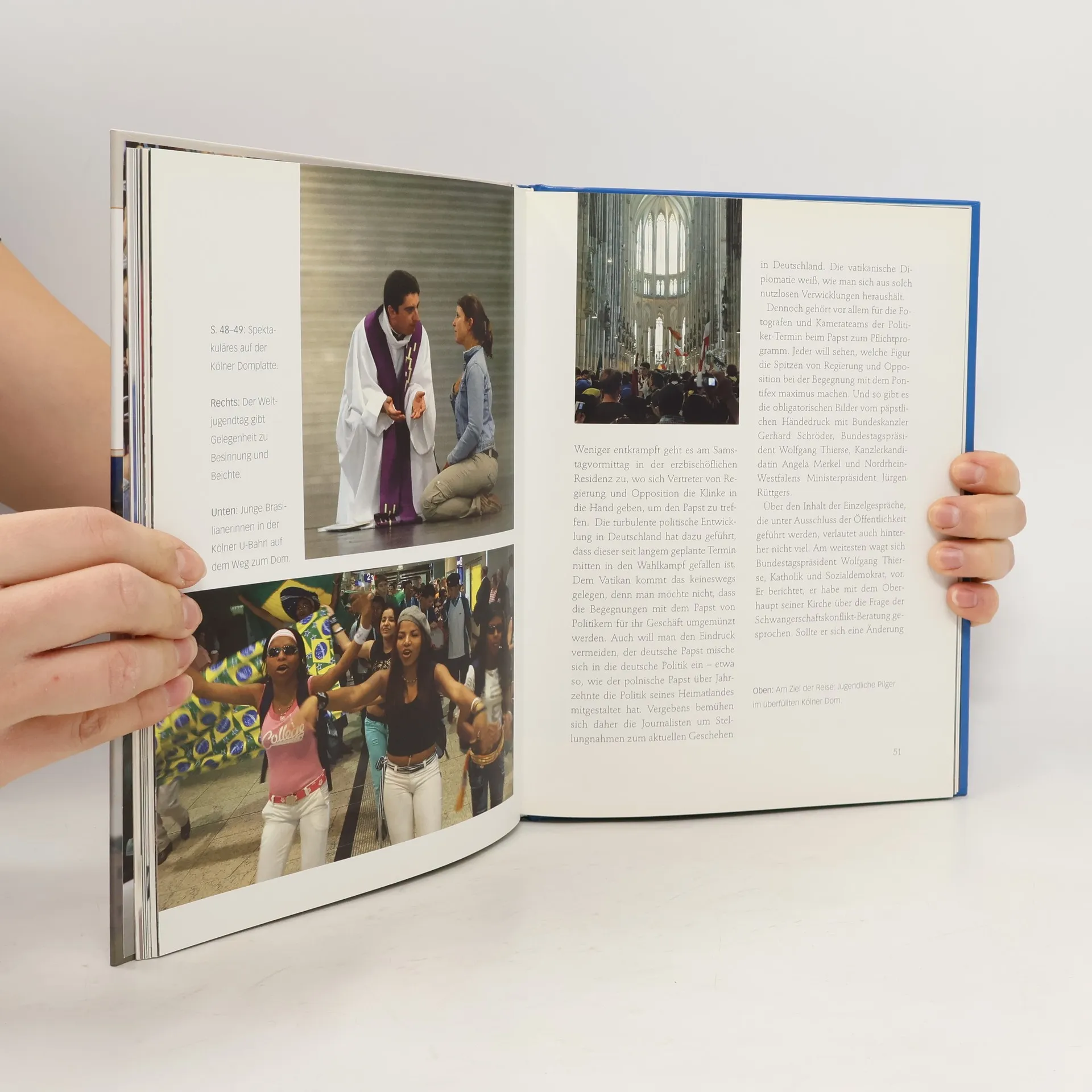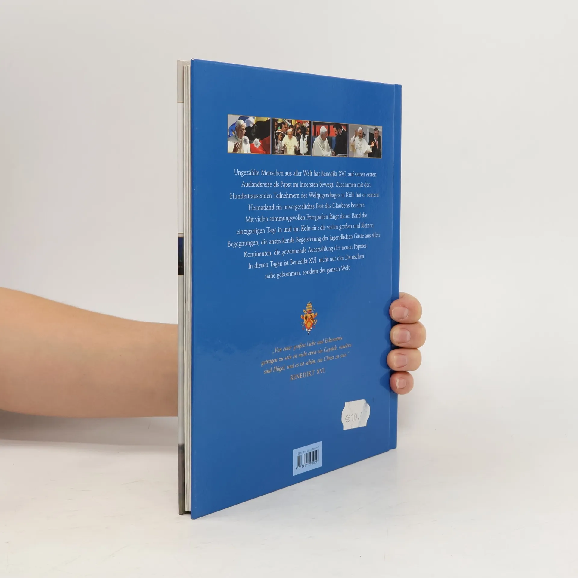 Dieser opulent bebilderte Erinnerungsband hält die unvergesslichen Begegnungen und Botschaften des Papstbesuches fest: die Ankunft in Köln, die Papamobil-Fahrten durch die Stadt und die Bootstour auf dem Rhein, die Treffen mit Politikern, Bischöfen, Vertretern anderer Konfessionen und Religionen sowie viele Begegnungen am Rande - und natürlich die gemeinsamen Gebete und Gottesdienste mit Teilnehmern des Weltjugendtags.