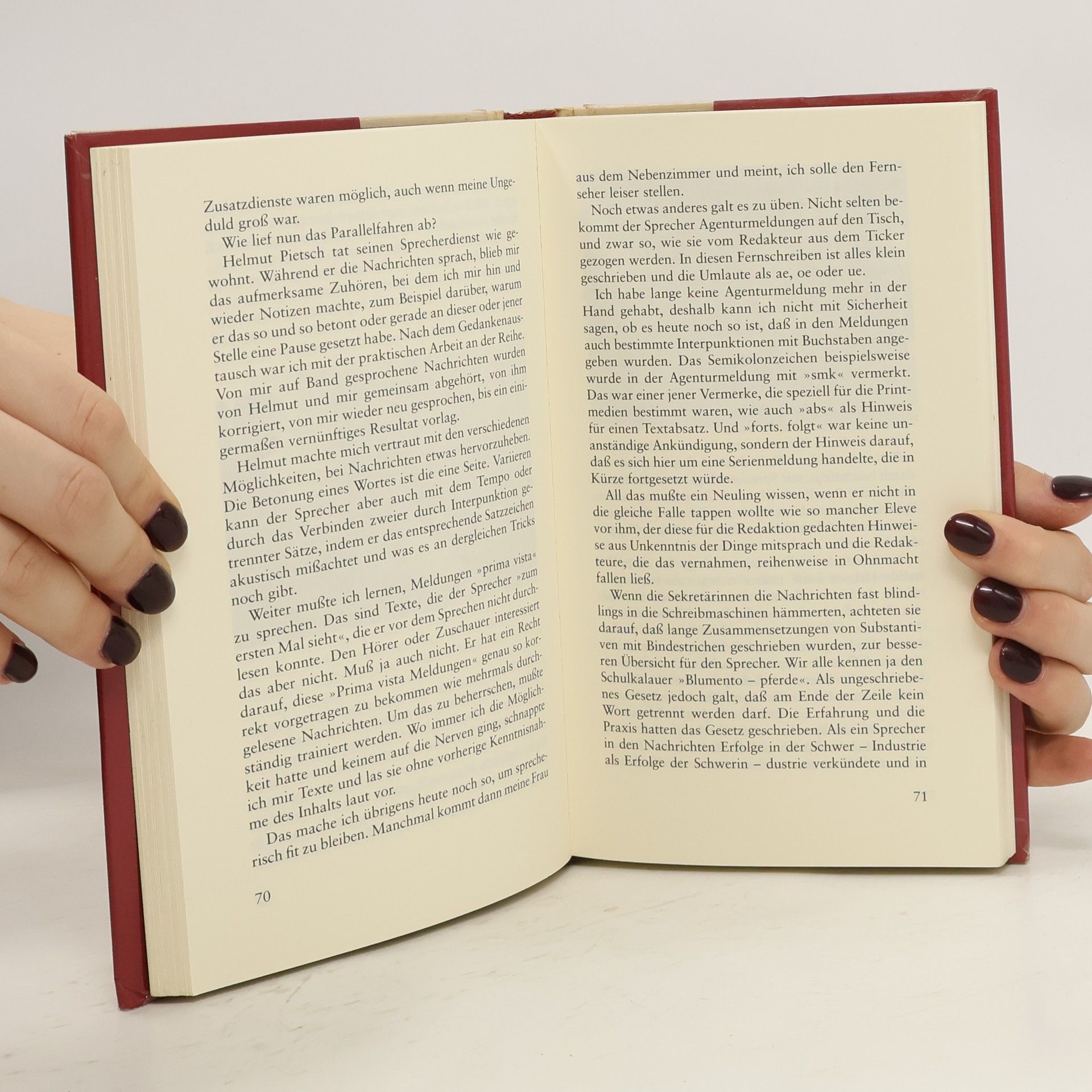 Fast drei Jahrzehnte flimmerte Klaus Feldmann regelmäßig als Sprecher der 'Aktuellen Kamera' über die Bildschirme der DDR. Seine Karriere begann 1957 beim Rundfunk, bevor er 1961 zum Fernsehen wechselte. In seinen jetzt erschienenen Erinnerungen kann der sympathische Journalist also auf mehr als dreißig Jahre Funk- und Fernsehgeschichte zurückblicken. Seine Erinnerungen gewähren interessante Einblicke in die Fernsehwelt der DDR, in ihre Medien- und Informationspolitik. Ein gut lesbarer, aufschlußreicher und zugleich höchst unterhaltsamer Beitrag über die Fernsehwelt der DDR von einem, der immer dabei war.