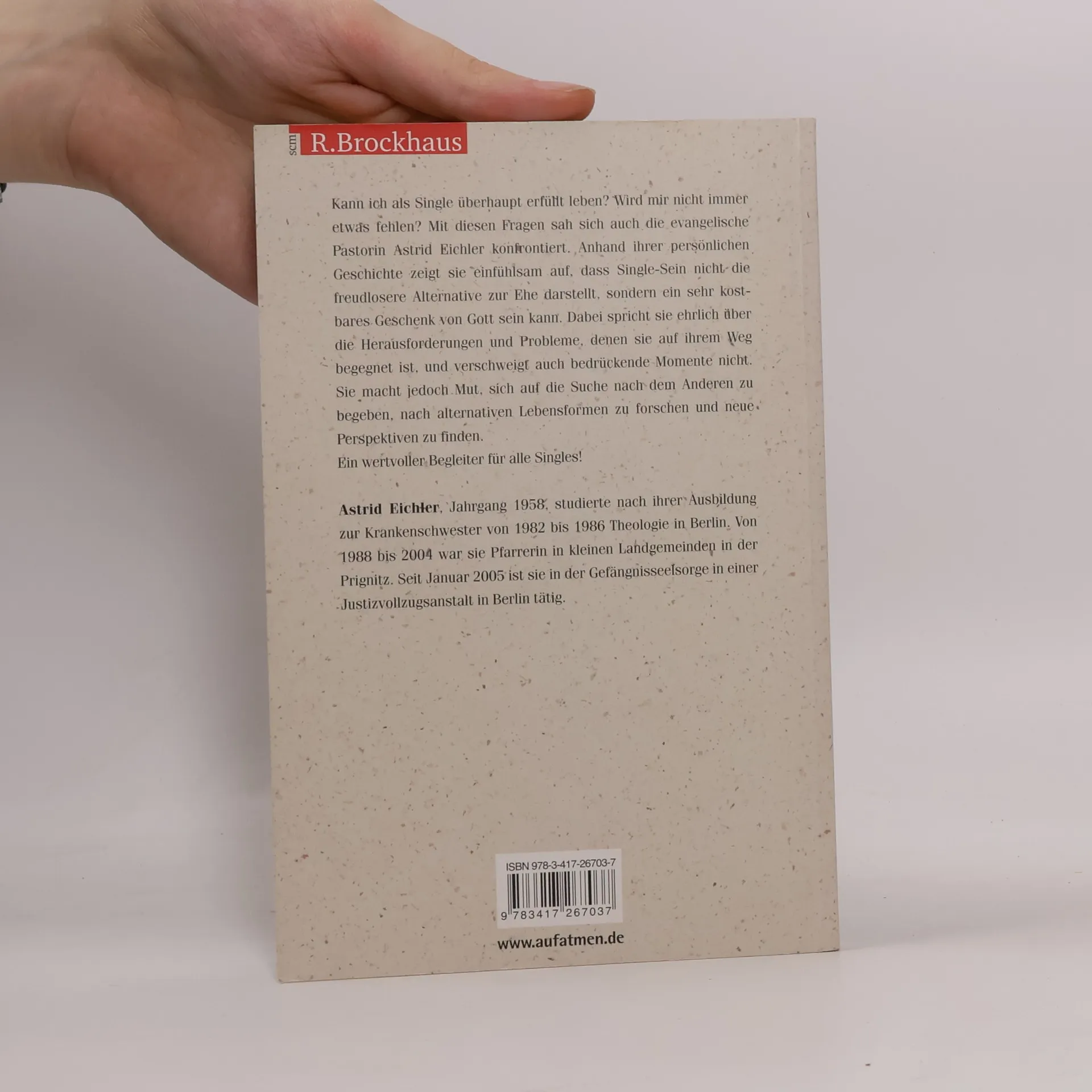 Kann ich als Single überhaupt erfüllt leben? Wird mir nicht immer etwas fehlen? Mit diesen Fragen sah sich auch die evangelische Pastorin Astrid Eichler konfrontiert. Anhand ihrer persönlichen Geschichte zeigt sie einfühlsam auf, dass Single-Sein nicht die freudlosere Alternative zur Ehe darstellt, sondern ein sehr kostbares Geschenk von Gott sein kann. Dabei spricht sie ehrlich über die Herausforderungen und Probleme, denen sie auf ihrem Weg begegnet ist, und verschweigt auch die bedrückenden Momente nicht. Ein Buch, das zu einem wertvollen Begleiter auf dem Lebensweg eines Singles werden kann, vielleicht sogar bei der Suche nach seiner Berufung!Kann ich als Single überhaupt erfüllt leben? Wird mir nicht immer etwas fehlen?Mit diesen Fragen sah sich auch die evangelische Pastorin Astrid Eichler konfrontiert. Anhand ihrerpersönlichen Geschichte zeigt sie einfühlsam auf, dass das Single-Dasein nicht die freudlosereAlternative zur Ehe darstellt, sondern ein sehr kostbares Geschenk von Gott sein kann. Dabei sprichtsie ehrlich über die Herausforderungen und Probleme, denen sie auf ihrem Weg begegnet ist undverschweigt auch die bedrückenden Momente nicht.Ein Buch, das zu einem wertvollen Begleiter auf dem Lebensweg Alleinstehender werden kann,vielleicht sogar bei der Suche nach der persönlichen Berufung!Weitere Infos auf www.emwag.de