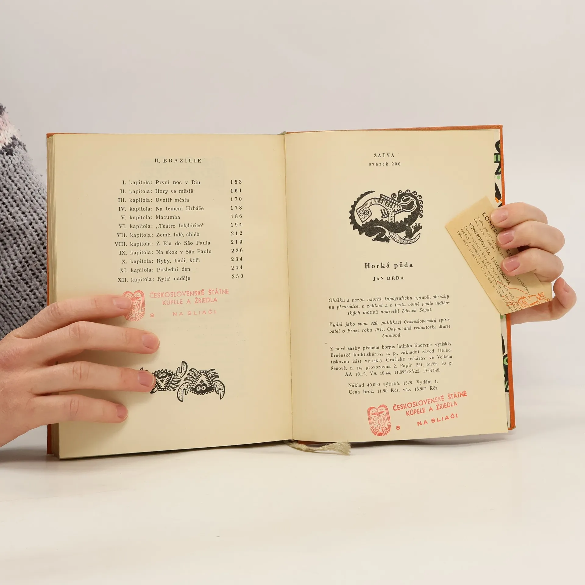 Poutavé reportáže z autorovy cesty po Chile a Brazilii, otiskované na počátku roku na stránkách Literárních novin, vycházejí knižně, doplněné a doprovázené fotografiemi a kresbami. Autor živě vnímá všechnykrásyjihoamericképřírody,ale nezavírá oči před tvrdou sociální skutečnostív zemích, kde vládne ještě nespravedlivý sociální řád. Formou srdečné a vtipné causerie, bystrého popisu i vzrušeného líčení přírodních krás a lidské bídyvytváříDrdarealistický obrazexotických zemí i života jejich obyvatel, neuvěřitelně strádajících, ale zároveň smělých, nadaných a tvrdě bojujících za svá práva. Řadu stránek věnuje setkání s Pablem Nerudou, vynikajícím chilskýmbásníkem, isjinýmí představiteliLatinské Ameriky, umělci, spisovateli a vědci. Neméně si však všímá i folkloru brazilského a chilského lidu, a jeho kultury, která dosahuje ve srovnání s nízkou hmotnou úrovní neobyčejně vysokéhostupně.