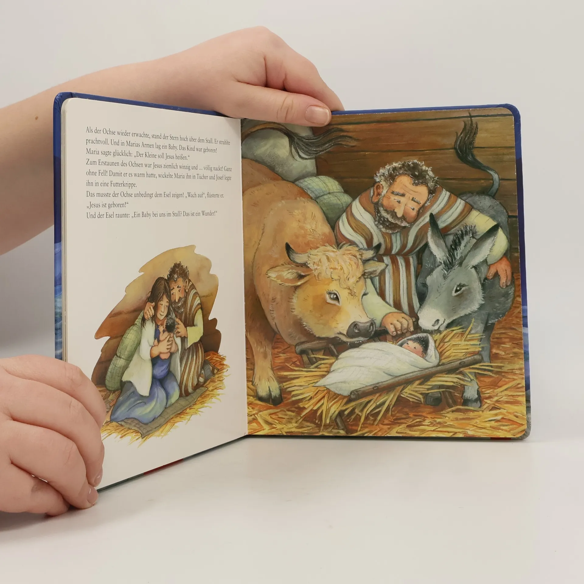 Vor über zweitausend Jahren wurde im fernen Bethlehem das Jesuskind geboren. Alles begann damit, dass der Ochse durch die Ritzen in der hölzernen Stallwand ein geheimnisvolles Licht entdeckte. Es kam von einem seltsamen Stern. Er hatte einen Schweif, der aussah wie ein Kuhschwanz! Aber das war nur der Anfang, denn kurz darauf betraten zwei Fremde den Stall. Die beiden hießen Maria und Josef … Mit einfachen Worten und stimmungsvollen Bildern erzählen Gaby Scholz und Maria Wissmann die biblische Weihnachtsgeschichte frei nach Matthäus und Lukas. Ein Buch für die ganze Familie.