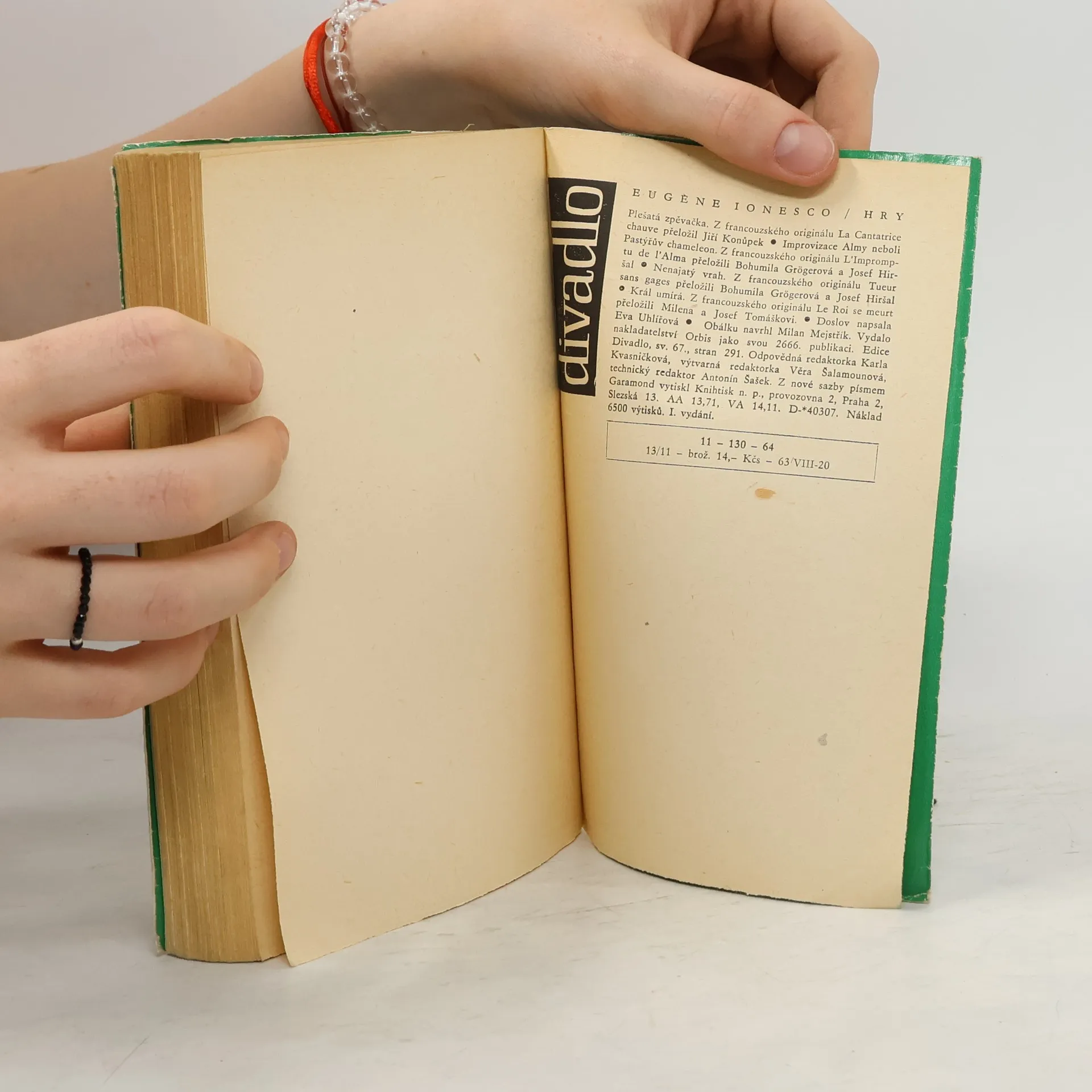 Čtyři čtenářsky a myšlenkově náročné divadelní hry francouzsky píšícího a ve Francii zakotveného Rumuna (nar. 1912), který z malých „avantgardních“ pařížských divadel pronikl na světová jeviště. Zájem i rozruch vyvolal svým osobitým viděním světa, společnosti a člověka a řešením morálně společenských problémů. Svazek obsahuje hry: Plešatá zpěvačka (1950) — Improvizace Almy neboli Pastýřův chameleon (1956) — Nenajatý vrah (1959) — Král umírá (1962).
