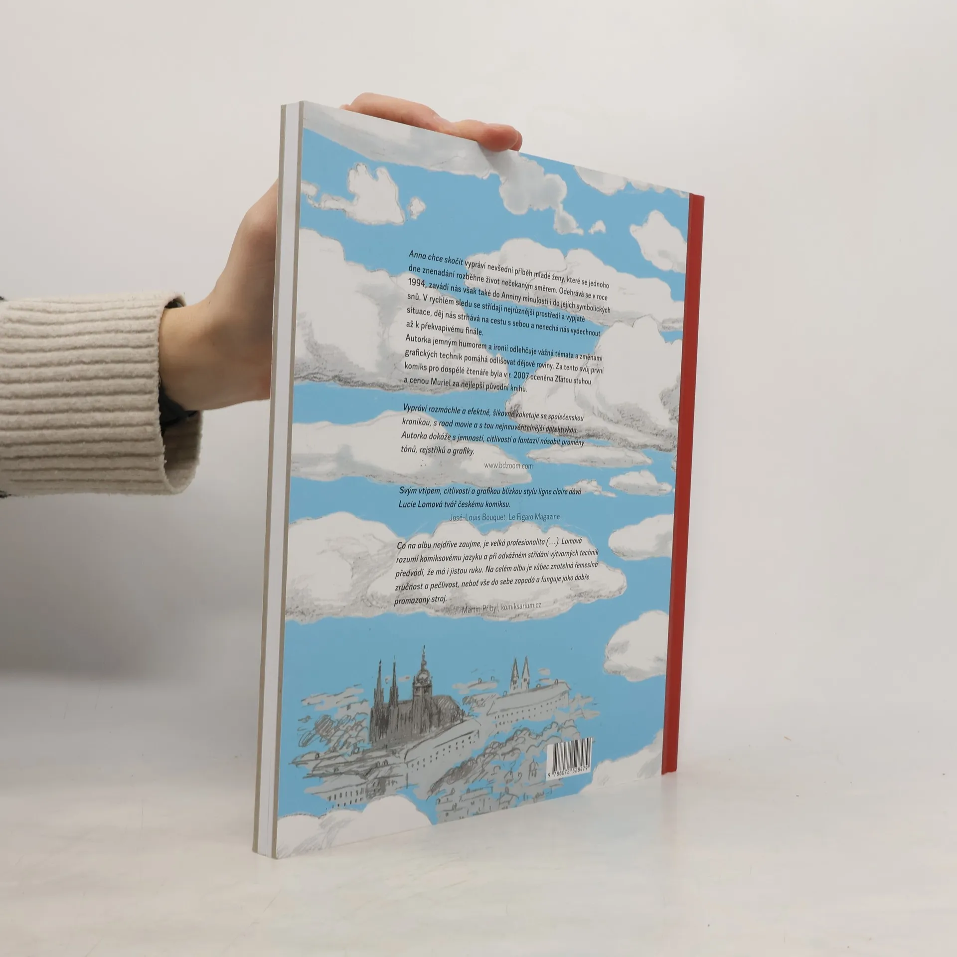 Anna chce skočit je první komiks Lucie Lomové pro dospělé čtenáře. Vypráví v něm nevšední příběh mladé ženy, které se jednoho dne znenadání rozběhne život nečekaným směrem a strhne nás na cestu s sebou. Jemným humorem odlehčuje vážná témata, změnami grafických technik pomáhá odlišovat dějové roviny. V rychlém sledu se střídají různá prostředí, příběh nás zavádí do Anniny minulosti i do jejích symbolických snů a nenechá nás vydechnout až k překvapivému finále.