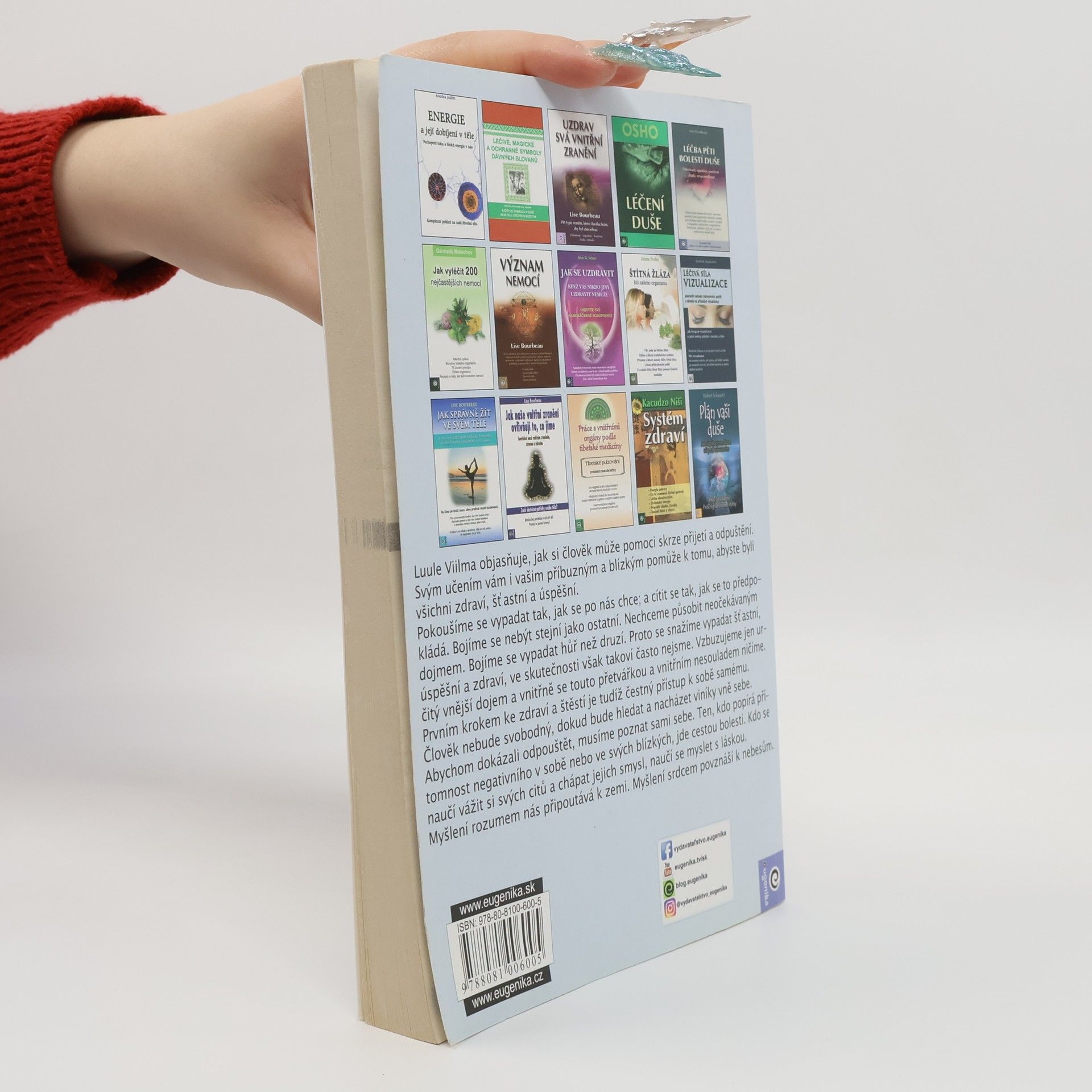 Luule Viilma objasňuje, jak si človek může pomoci skrze přijetí a odpuštění. Svým učením a myšlenkami vám i vašim příbuzným a blízkým pomůže k tomu, abyste byli všichni zdraví, šťastní a úspěšní. Snažíme se vypadat tak, jak se od nás chce; a cítit se tak, jak se to předpokládá. Bojíme se nebýt stejní jako ostatní. Nechceme působit neočekávaným dojmem. Bojíme se vypadat hůř než druzí. Proto se snažíme vypadat šťastní, úspěšní a zdraví, ve skutečnosti však takoví často nejsme. Vzbuzujeme jen určitý vnější dojem a vnitřně se touto přetvářkou a nesouladem ničíme. Prvním krokem ke zdraví a štěstí je proto čestný přístup k sobě sama. Člověk nebude svobodný, dokud bude hledat a nacházet viníky mimo sebe. Abychom dokázali odpouštět, musíme poznat sami sebe. Ten, kdo popírá přítomnost negativního v sobě či ve svých blízkých, jde cestou bolesti. Kdo se naučí vážit si svých citů a chápat jejich smysl, naučí se myslet s láskou. Myšlení rozumem nás připoutává k zemi. Myšlení srdcem povznáší k nebesům.