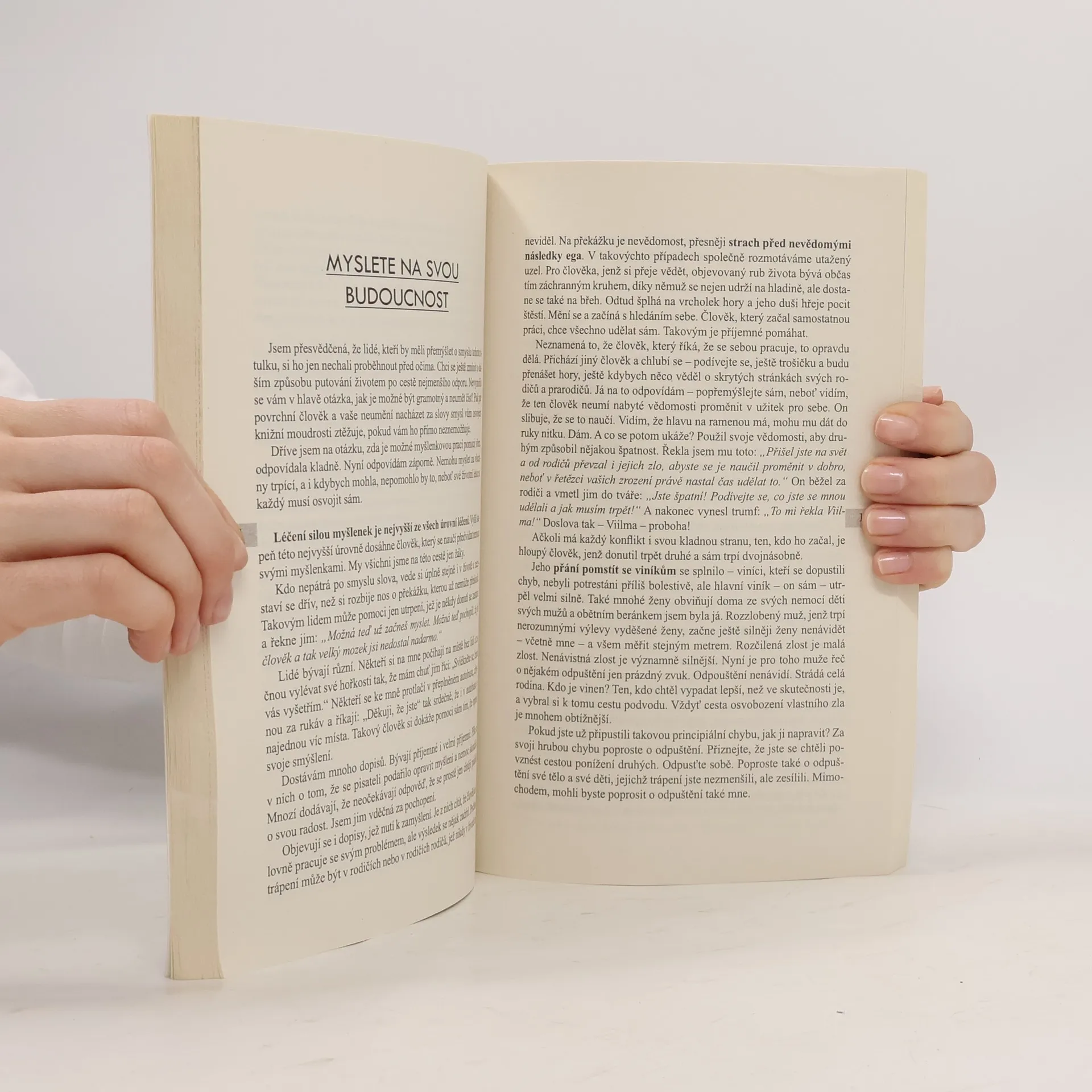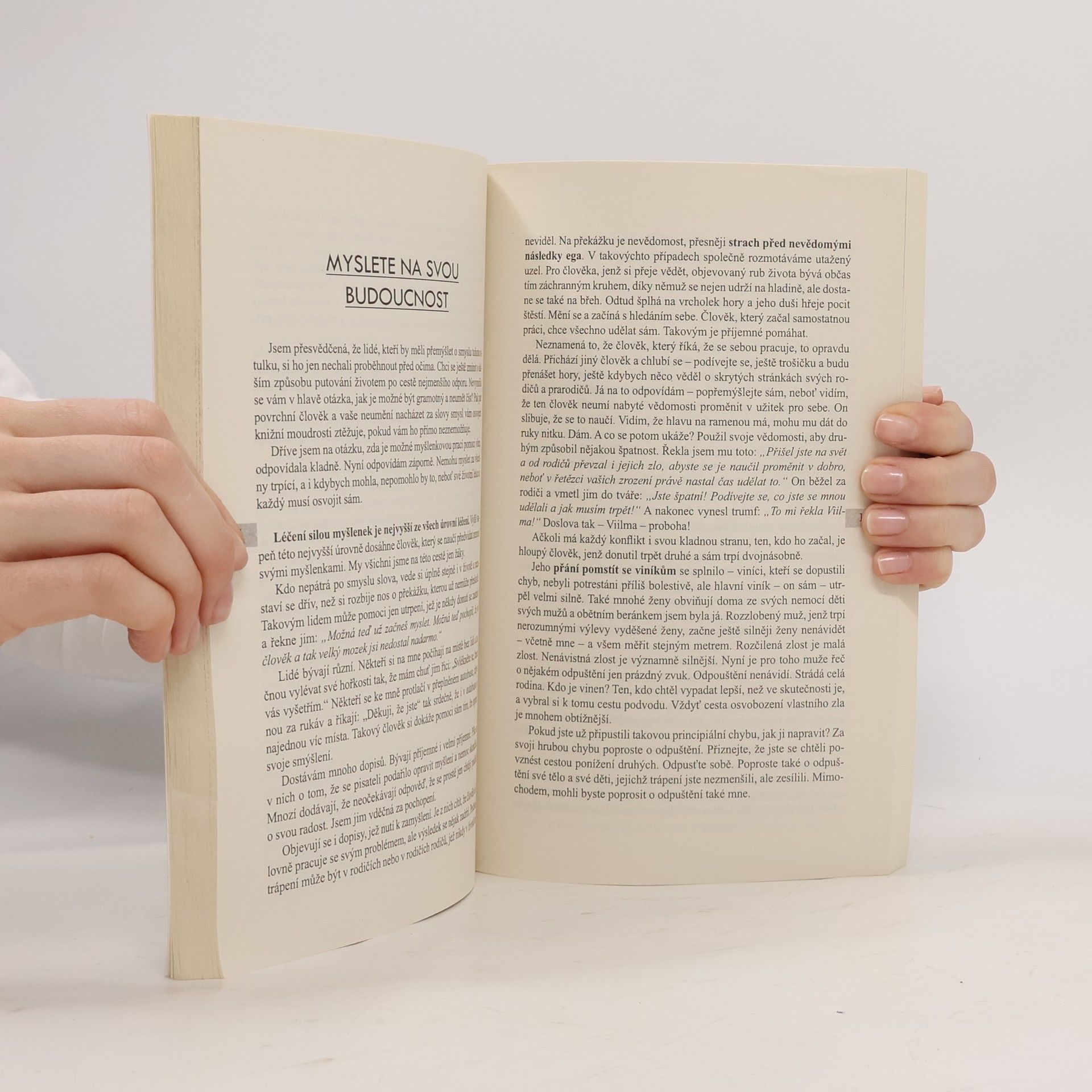 Luule Viilma objasňuje, jak si človek může pomoci skrze přijetí a odpuštění. Svým učením a myšlenkami vám i vašim příbuzným a blízkým pomůže k tomu, abyste byli všichni zdraví, šťastní a úspěšní. Snažíme se vypadat tak, jak se od nás chce; a cítit se tak, jak se to předpokládá. Bojíme se nebýt stejní jako ostatní. Nechceme působit neočekávaným dojmem. Bojíme se vypadat hůř než druzí. Proto se snažíme vypadat šťastní, úspěšní a zdraví, ve skutečnosti však takoví často nejsme. Vzbuzujeme jen určitý vnější dojem a vnitřně se touto přetvářkou a nesouladem ničíme. Prvním krokem ke zdraví a štěstí je proto čestný přístup k sobě sama. Člověk nebude svobodný, dokud bude hledat a nacházet viníky mimo sebe. Abychom dokázali odpouštět, musíme poznat sami sebe. Ten, kdo popírá přítomnost negativního v sobě či ve svých blízkých, jde cestou bolesti. Kdo se naučí vážit si svých citů a chápat jejich smysl, naučí se myslet s láskou. Myšlení rozumem nás připoutává k zemi. Myšlení srdcem povznáší k nebesům.