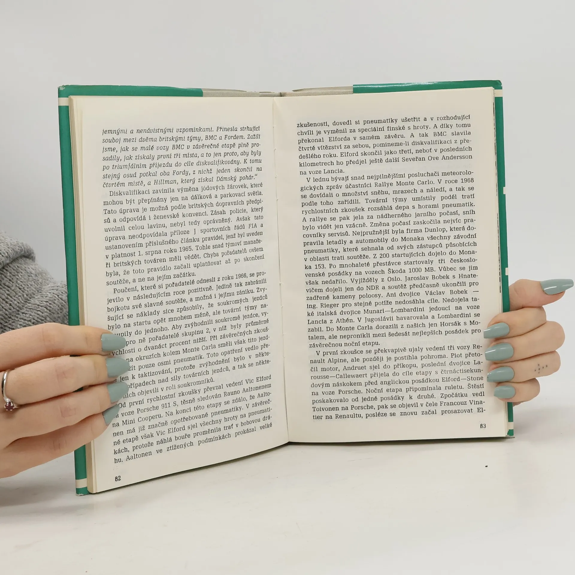 Zajímavé vyprávění, doplněné řadou dokumentárních fotografií, přibližuje atmosféru rallye a osudy lidí, kteří s těmito závody spojili své životy. Připomíná nejstarší automobilové soutěže, nejslavnější rallye světa i velký rozmach automobilových závodů mezi válkami. Seznamuje súspěchy čs. vozů a závodníků, s průběhem jednotlivých ročníků Rallye Monte Carlo a dalších velkých automobilových soutěží.