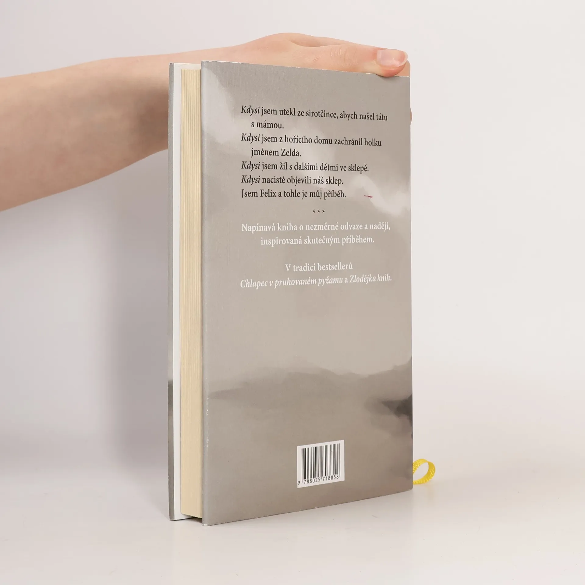 Každý si zaslouží zažít něco dobrého. Alespoň jednou v životě. Tři roky a osm měsíců žije devítiletý Felix v odlehlém katolickém sirotčinci v horách, ačkoli není katolického vyznání. Jeho rodiče nejsou mrtví. Přivedli ho k matce Mince, představené jeptišek, aby se měl dobře. A určitě si pro něj brzy přijdou, jak Felix věří, jen co vyřeší potíže, které mají se svým knihkupectvím. Protože židovští knihkupci to mají v Polsku roku 1942 těžké. Jak moc, to Felix pochopí, až když se v sirotčinci objeví muži s podivnými páskami na rukávech a začnou vyhazovat a pálit knihy z místní knihovny. Felix uteče, aby našel rodiče a před těmi muži je varoval. Cestou zachrání z hořícího domu malou Zeldu, jejíž rodina byla zavražděna, a pomalu mu dochází, co mají tihle spalovači knih za lubem. A co to znamená pro něj, Zeldu a všechny ostatní Židy. Morris Gleitzman líčí v prvním dílu z čtyřdílné řady život v okupovaném Polsku z dětsky naivní perspektivy malého hrdiny, jeho výpověď je však o to silnější.