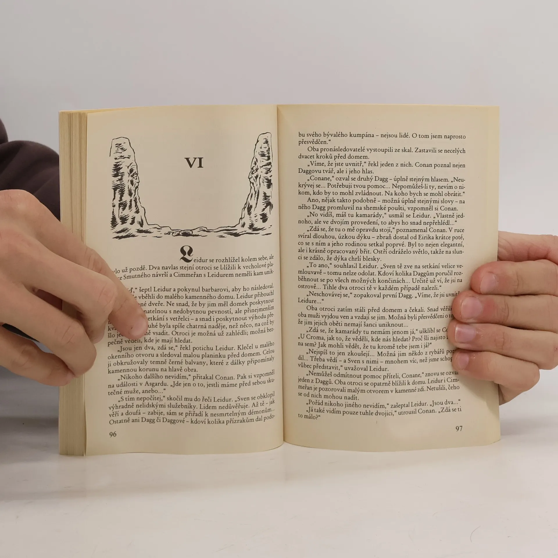 Zkrachovalý vojevůdce a neúspěšný intrikán Sven Drak z Asgardu je nucen z vůle svých přemožitelů dožít na ostrově plném ledovců daleko na severu. Ani zde však nemíní odložit své plány na ovládnutí mocných království na pevnině. Spoléhá především na kouzlo, které vymámil z velekněze tajemného podzemního chrámu: ten ovládl s nechtěným přispěním tajemných Grimů. S pomocí magického černého kamene začne budovat přízračnou armádu nelidských bojovníků. Pokud však chce své plány uskutečnit, musí co nejrychleji usmrtit Conana z Cimmerie – jedině smrt věhlasného bojovníka mu umožní využít veškerou moc černého kamene i získat nesmrtelnost. Conan se proti své vůli ocitá na ostrově, ale nehodlá svůj život prodat lacino. V boji proti neblahému Swenu Drakovi mu pomáhá čarodějka Arzala a několik domorodců. Má-li ho však zbavit mocného kouzla a ostrov i království na pevnině zachránit před záhubou, musí se nejprve vítězně utkat se spoustou děsivých přízraků a projít i kamenným podzemním labyrintem... celý text