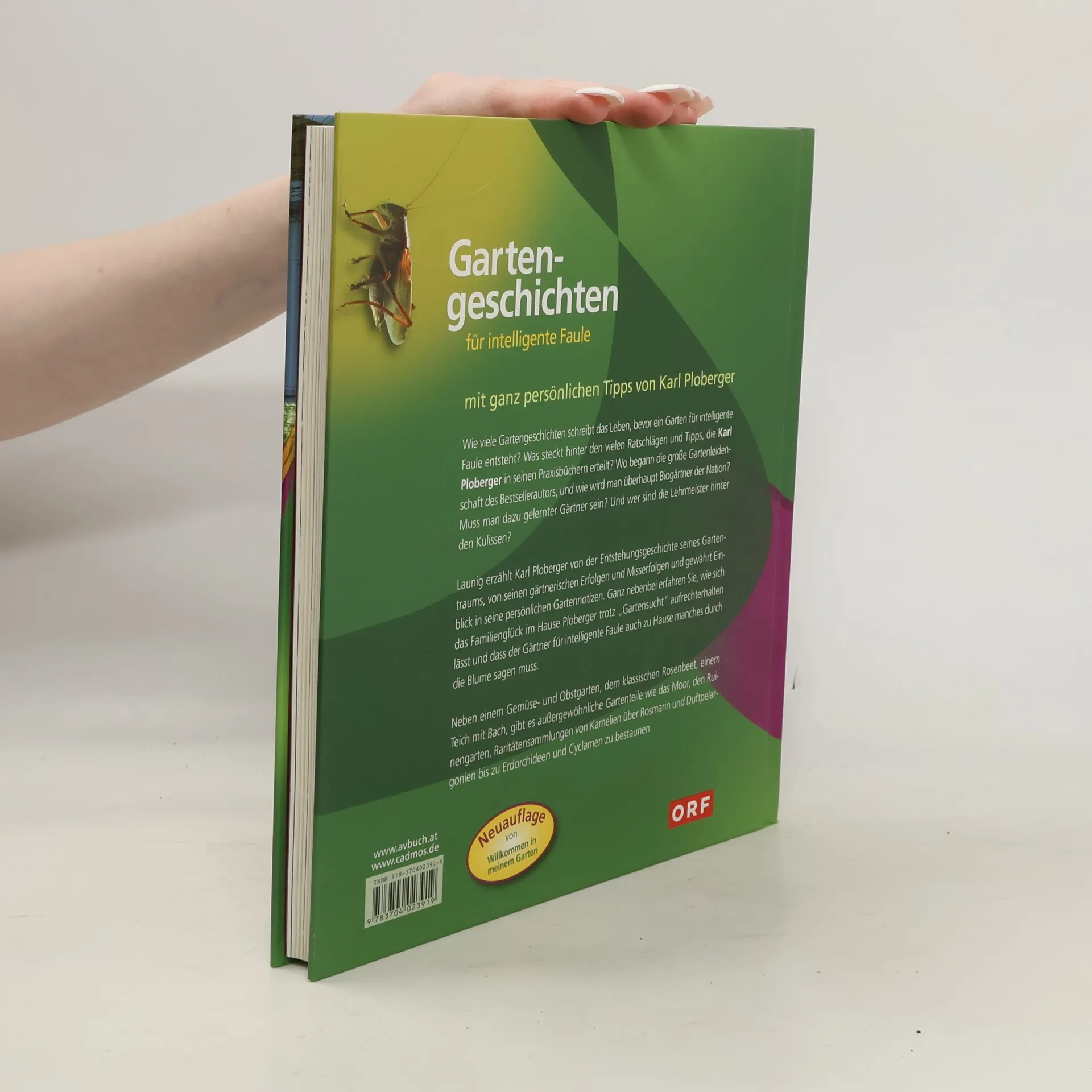 Für neugierige Fans öffnet Karl Ploberger immer wieder seine Gartentüre. In seinem Buch „Gartengeschichten für intelligente Faule“ – eine überarbeite, komplett neu gestaltete Neuauflage des Werkes „Willkommen in meinem Garten“ – gewährt er allen und zu jeder Zeit Einblick in sein ganz persönliches Reich. Was verbirgt sich hinter den vielen Ratschlägen und Tipps, die der Biogärtner in seinen Praxisbüchern gibt? Hat der Autor ein Stück englische Gartengestaltung auf eigenem Grund und Boden wahrgemacht? Wird bei ihm wirklich ganz biologisch gegärtnert? Der 2.500 m² große Garten hat Einiges zu bieten: neben einem Gemüse- und Obstgarten, dem klassischen Rosenbeet und einem Teich mit Bach, findet der Besucher auch außergewöhnliche Gartenteile wie das Moor, den Ruinengarten, Blumenwiesen und Raritätensammlungen von Kamelien und Rosmarin über Duftpelargonien bis zu Erdorchideen und Zyklamen. Glashäuser, Kompost und ein Umtopfplatz dürfen nicht fehlen und das Gartenhäuschen zwischen üppigen Blumen sorgt für Stunden der Muße. Launig erzählt Karl Ploberger von seinen gärtnerischen Erfolgen und Misserfolgen, von der Entstehungsgeschichte seines Gartentraums und gewährt Einblick in seine Gartennotizen. Auch gibt er diesmal ganz persönliche Praxistipps preis.