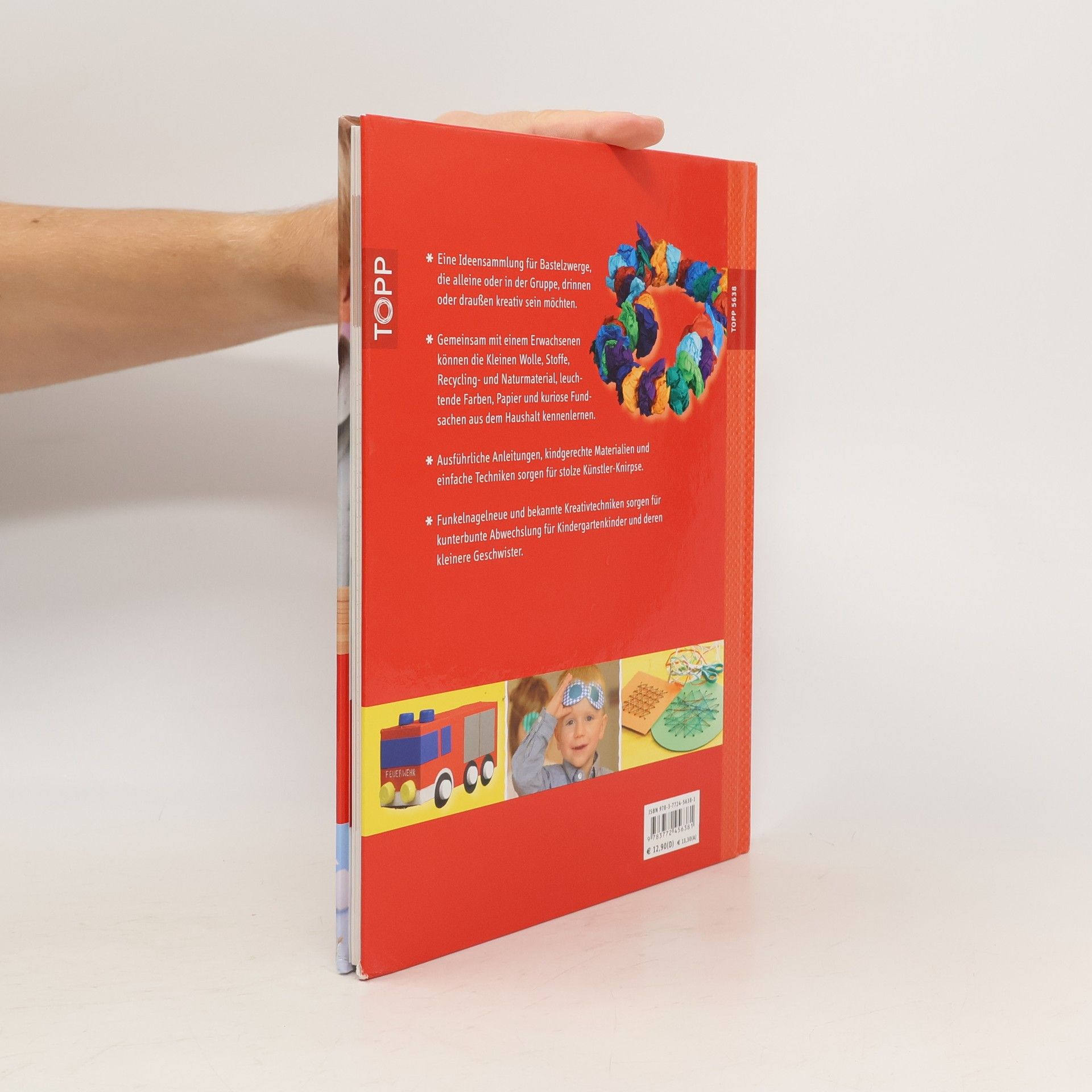 Eine Ideensammlung für Bastelzwerge, die alleine oder in der Gruppe, drinnen oder draußen kreativ sein möchten. Nigelnagelneue und bekannte Kreativtechniken sorgen für kunterbunte Abwechslung, für Kindergartenkinder und deren kleineren Geschwister. Gemeinsam mit einem Erwachsenen können die Kleinen Wolle, Stoff, Recycling- und Naturmaterial, leuchtende Farben, Papier und kuriose Fundsachen aus dem Haushalt kennenlernen und verarbeiten. Ausführliche Anleitungen, kindgerechte Materialien und einfache Techniken sorgen für stolze Künstler-Knirpse. 108 Seiten, 19 x 26,5 cm, Hardcover