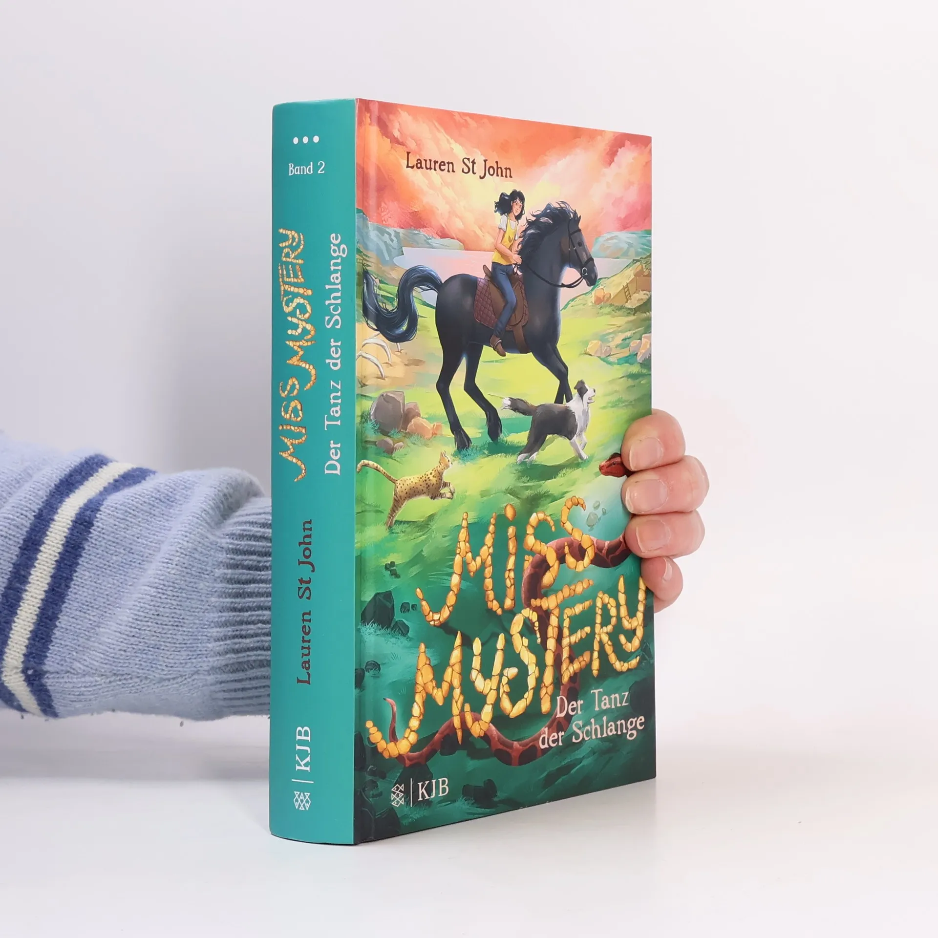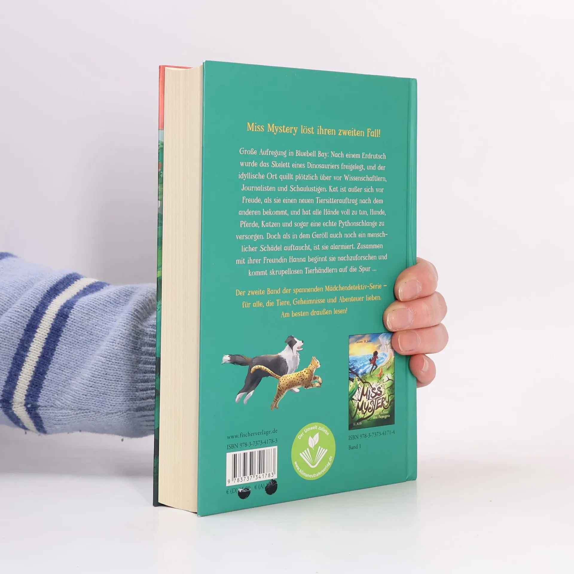 Miss Mystery löst ihren zweiten Fall Große Aufregung in Bluebell Bay: Nach einem Erdrutsch wurde das Skelett eines Dinosauriers freigelegt, und der idyllische Ort quillt plötzlich über vor Wissenschaftlern, Journalisten und Schaulustigen. Kat ist außer sich vor Freude, als sie einen neuen Tiersitterauftrag nach dem anderen bekommt, und hat alle Hände voll zu tun, Hunde, Pferde, Katzen und nicht zuletzt eine echte Pythonschlange zu versorgen. Doch als in dem Geröll auch noch ein menschlicher Schädel auftaucht, ist sie alarmiert. Zusammen mit ihrer Freundin Hanna beginnt sie nachzuforschen. Und alle Spuren führen zu einem geheimen Netzwerk von skrupellosen Tierhändlern … Der zweite Band der neuen Mädchendetektiv-Serie der preisgekrönten Bestsellerautorin Lauren St John – für alle, die Tiere und Abenteuer lieben. Am besten draußen lesen! Alle Bände der Serie »Miss Mystery«:Band 1: Der Schrei des PapageisBand 2: Der Tanz der Schlange
