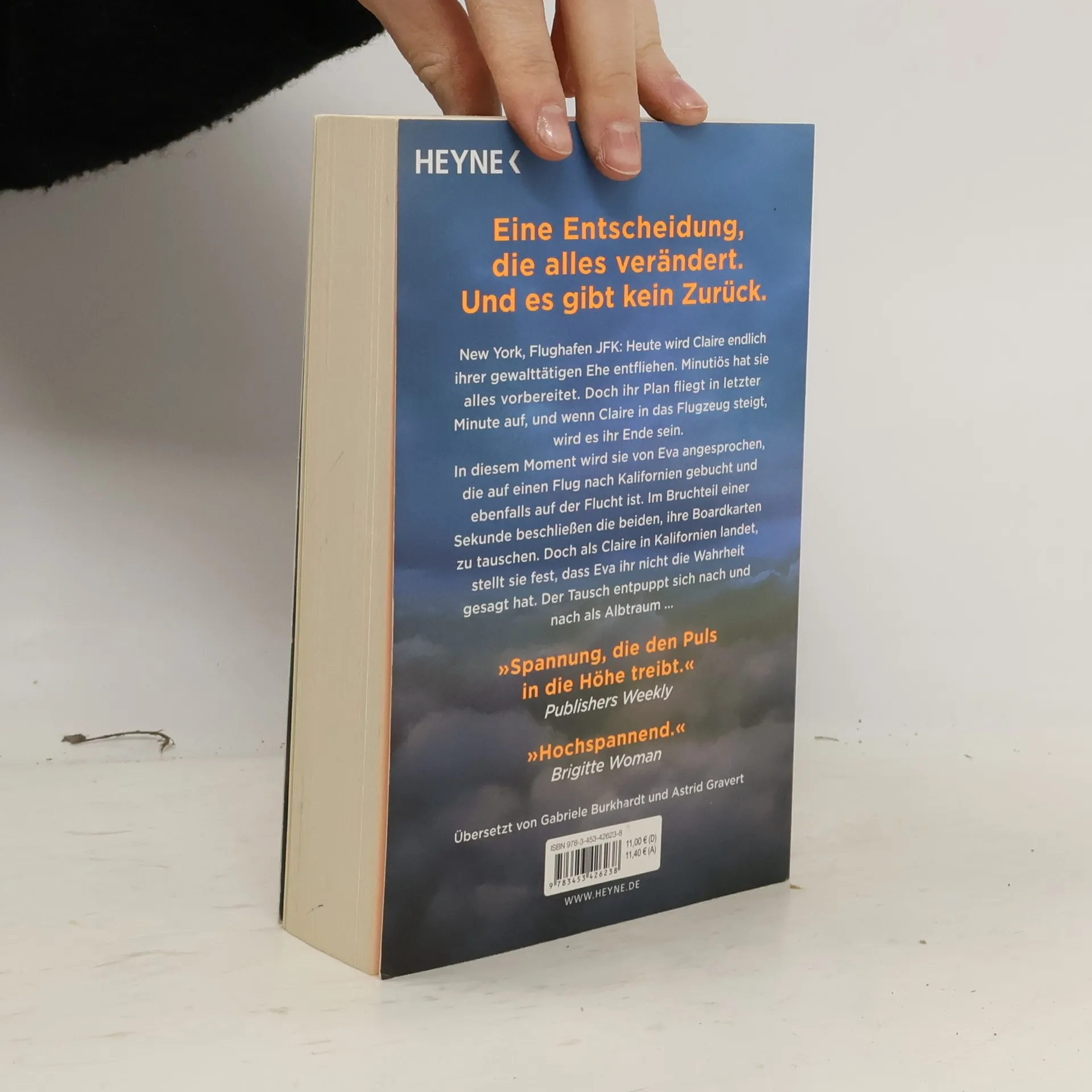 Zwei Frauen auf der Flucht. Eine Entscheidung, die alles verändert. Und kein Weg zurück. New York, Flughafen JFK: Heute wird Claire endlich ihrer gewalttätigen Ehe entfliehen. Minutiös hat sie alles vorbereitet. Doch ihr Plan fliegt in letzter Minute auf, und wenn Claire in das Flugzeug steigt, wird es ihr Ende sein. In diesem Moment wird sie von Eva angesprochen, die auf einen Flug nach Kalifornien gebucht und ebenfalls auf der Flucht ist. Im Bruchteil einer Sekunde beschließen die beiden, ihre Bordkarten zu tauschen. Doch als Claire in Kalifornien landet, stellt sie fest, dass Eva ihr nicht die Wahrheit gesagt hat. Der Tausch entpuppt sich nach und nach als Albtraum ...