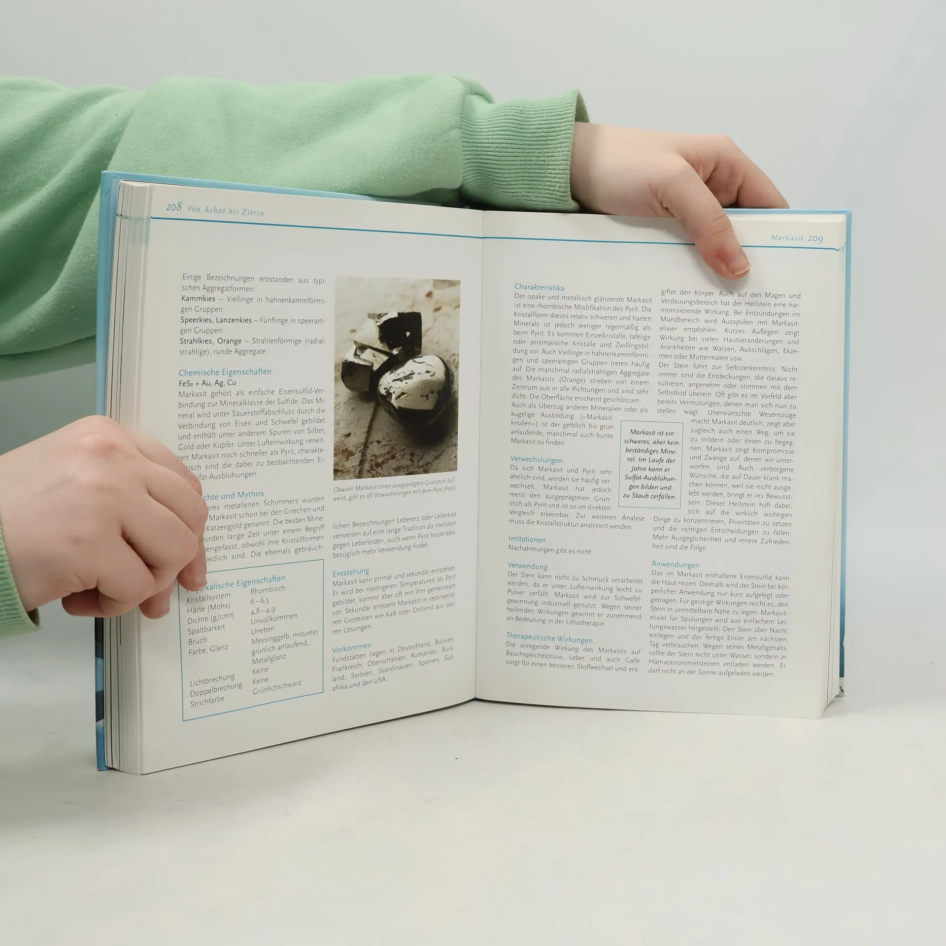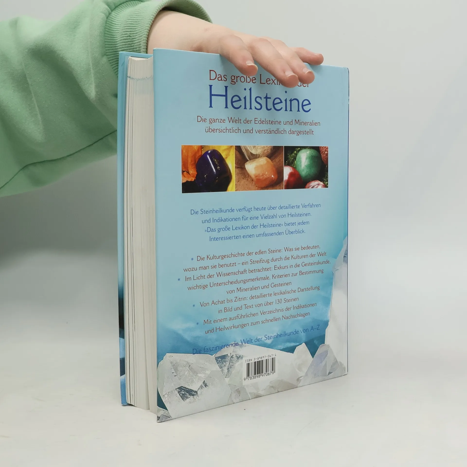 Geschichte, Geologie und Mineralogie, physikalische und chemische Eigenschaften, Vorkommen, therapeutische Wirkung und Anwendung von Heilsteinen; reich illustriert