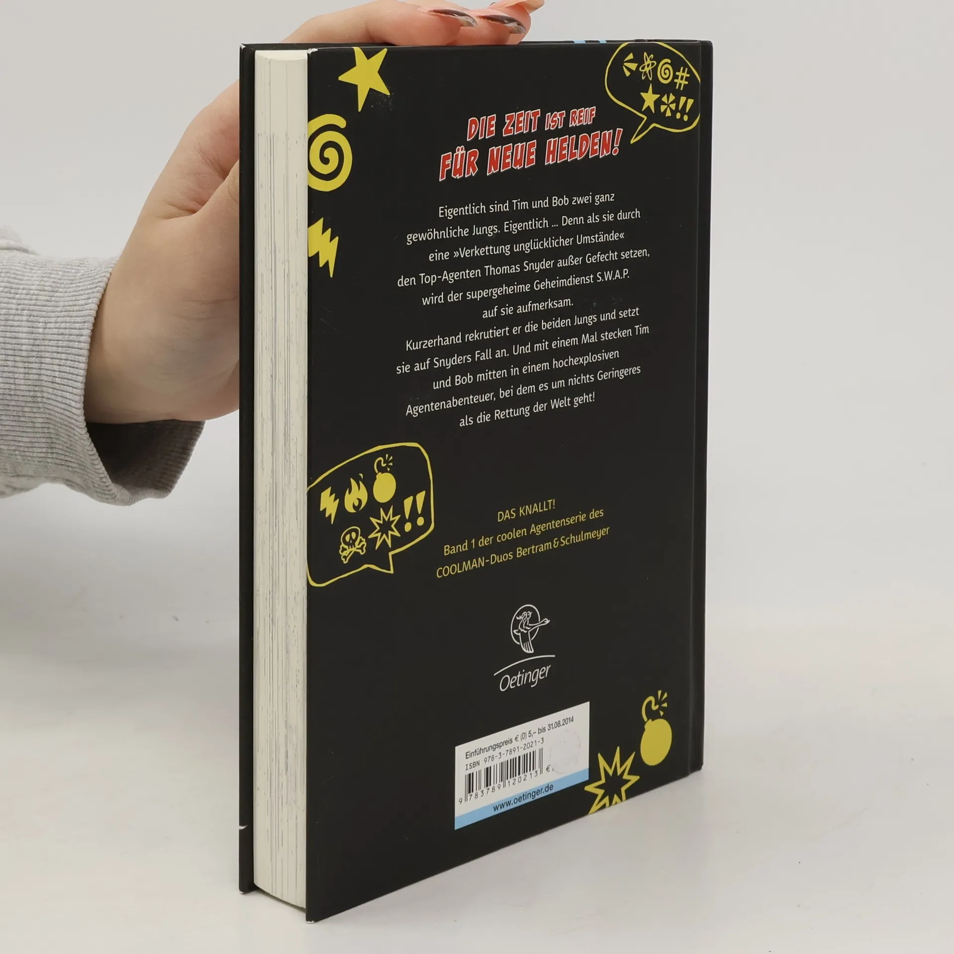 Die Zeit ist reif für neue Helden! Band 1 der neuen Serie über zwei ultracoole Geheimagenten Eigentlich sind Tim und Bob zwei ganz gewöhnliche Jungs. Eigentlich … Denn als sie durch eine Verkettung unglücklicher Umstände, an denen sie zugegebenermaßen nicht ganz unschuldig sind, den Top-Agenten Thomas Snyder außer Gefecht setzen, wird der supergeheime Geheimdienst S. W. A. P. auf sie aufmerksam. Kurzerhand rekrutiert der die beiden Jungs und setzt sie auf Snyders Fall an. Und mit einem Mal stecken Tim und Bob mitten in einem hochexplosiven Agentenabenteuer, bei dem es um nichts Geringeres als die Rettung der Welt geht! Mit supervielen Comics!