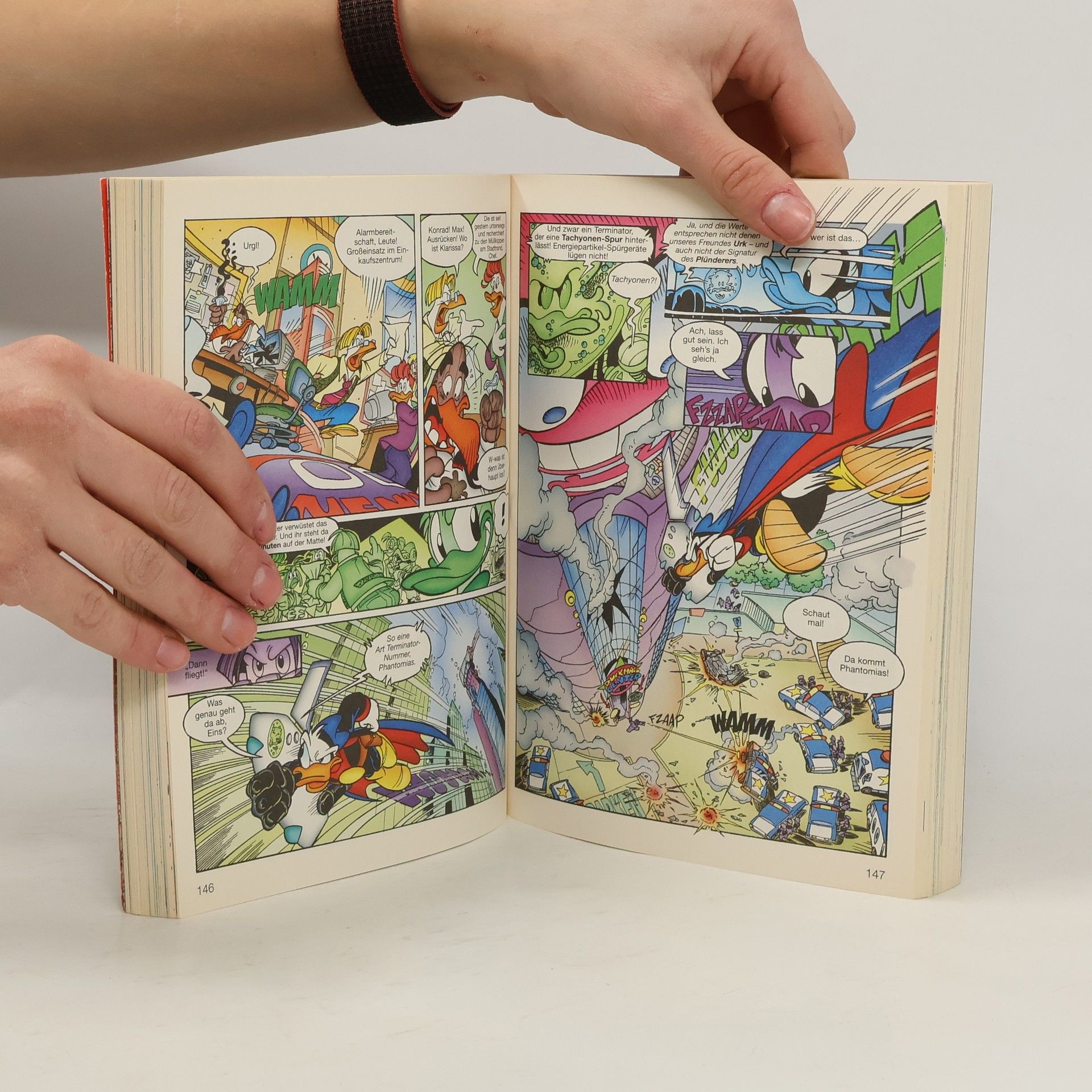 Der neue Phantomias - Große Gefahren Der neue Phantomias kämpft weiter. Auch wenn sich sein Alter Ego Donald Duck mittlerweile als Wirtschaftsboss verdingt und die Geschäfte des mysteriösen und exzentrischen Milliardärs Everett Ducklair führt. Wie es wohl dazu kam? Doch als wäre das nicht schon genug, greifen auch noch die Evronianer gleich an verschiedenen Orten der Erde an und haben dabei auch eine ganz persönliche Rechnung mit dem Helden offen. Schlließlich muss Phantomias auch noch seine geheime Flamme, die Xerbianerin mit den Besonderen Augen dovor bewahren wie eine Sternschnuppe zu verglühen. Bei allen Geschichten dieses Lustigen Taschenbuchs handelt es sich um deutsche Erstveröffentlichungen!