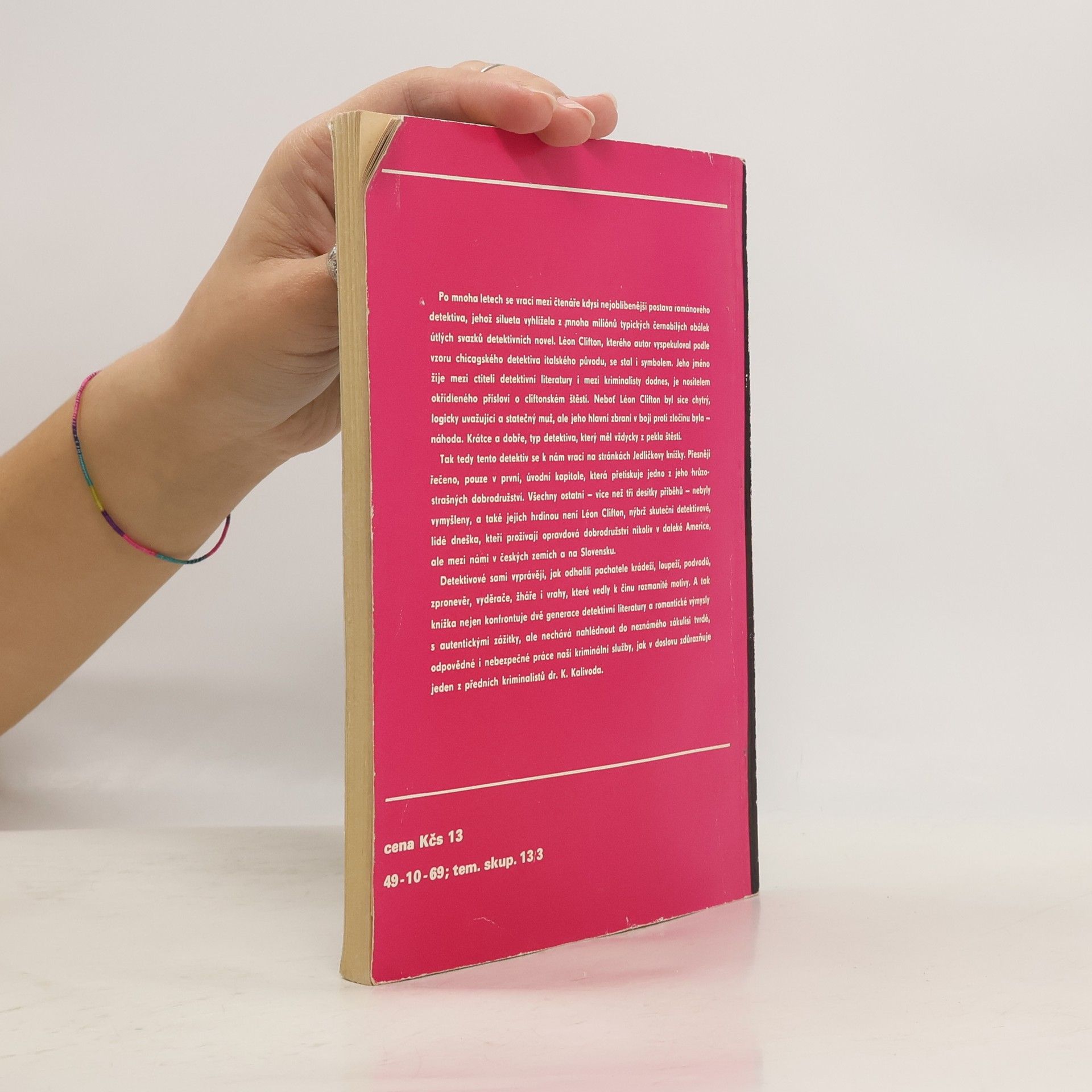 Po jednom přetištěném původním příběhu proslulého Léona Cliftona následuje třicet šest skutečných detektivních případů, vybraných ze současné činnosti našich kriminálních pracovníků. Odhalují se v nich jedinečné varianty akombinace na věčné motivy zločinů. Doslov K. Kalivody přibližuje duševní situaci kriminalisty, který jako člověk prožívá při osobním zásahu hrůzu přečinu, často i spolu s pachatelem.