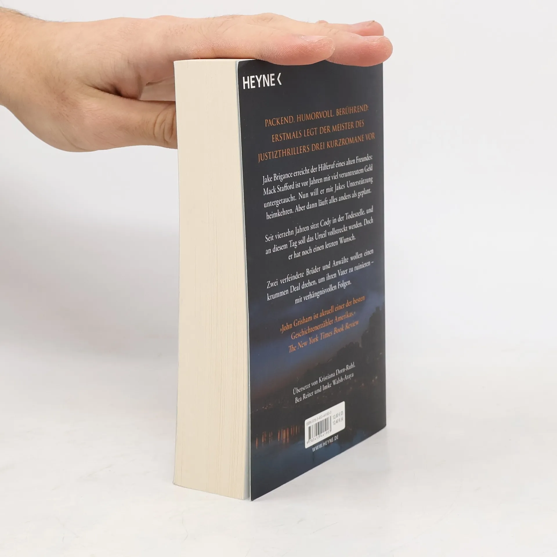 Erstmals legt der Meister des Justizthrillers drei Kurzromane vor: packend, humorvoll, berührend. Jake Brigance erreicht der Hilferuf eines alten Freundes: Mack Stafford ist vor Jahren mit viel veruntreutem Geld untergetaucht. Nun will er mit Jakes Unterstützung heimkehren. Aber dann läuft alles anders als geplant. Seit vierzehn Jahren sitzt Cody in der Todeszelle, und an diesem Tag soll das Urteil vollstreckt werden. Doch er hat noch einen letzten Wunsch. Zwei verfeindete Brüder und Anwälte wollen einen krummen Deal drehen, um ihren Vater zu ruinieren – mit verhängnisvollen Folgen.