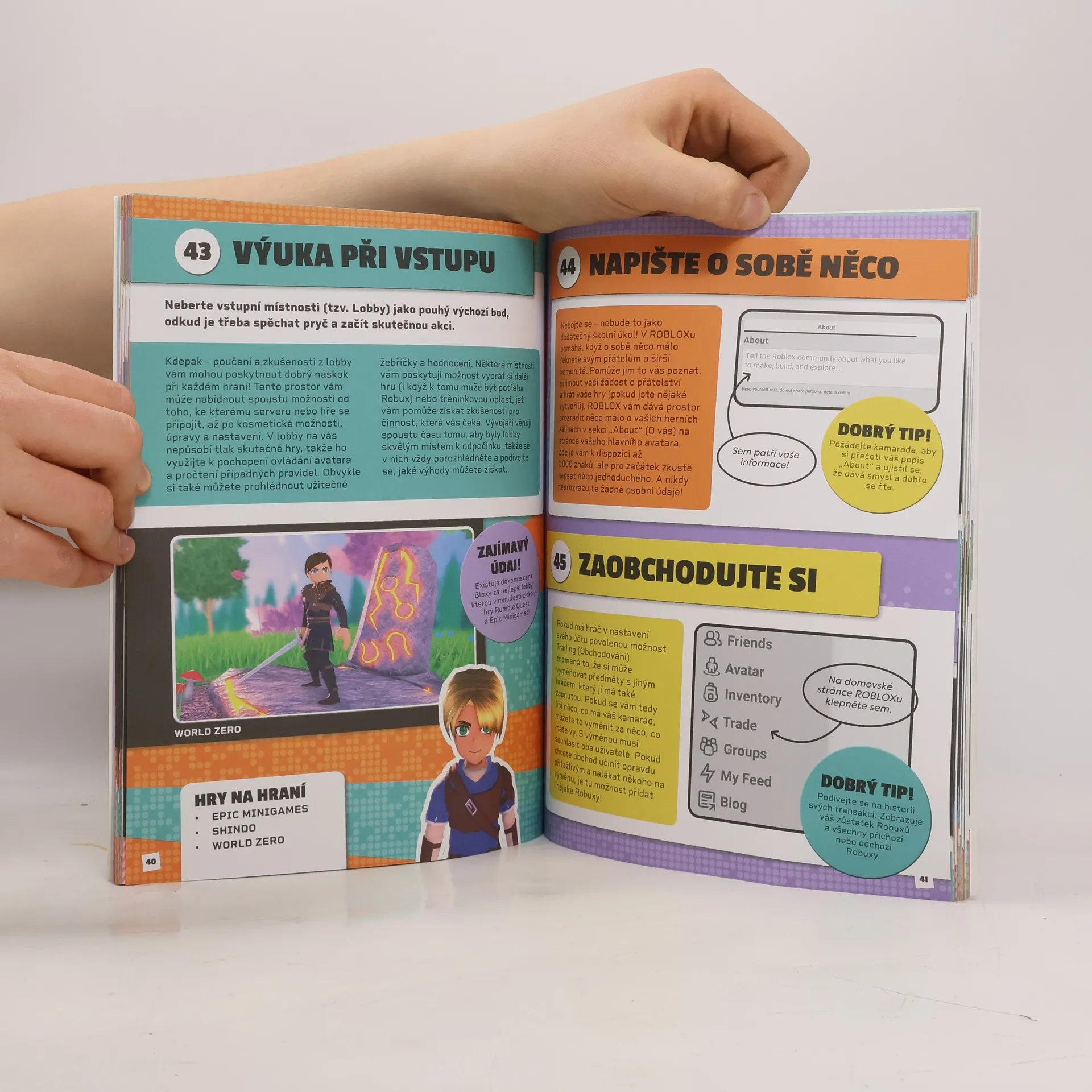 „Ovládněte svět robloxu a hrajte naplno!“ Uvnitř této skvělé příručky najdete 101 tipů a triků, jak si vylepšit herní zážitek vaší oblíbené hry. Od správy účtu a přizpůsobení vaší postavy až po navrhování vlastních her. Dozvíte se například jak překonávat herní rekordy, ovládat auta jako profík, rozjet zábavnou hru s kamarády nebo vytvořit vlastní dobrodružstí. Kniha je navíc plná tipů na skvělé Robloxové hry, které byste neměli minout. Ohromte své přátele svými novými dovednostmi a posuňte svůj herní zážitek na novou úroveň!