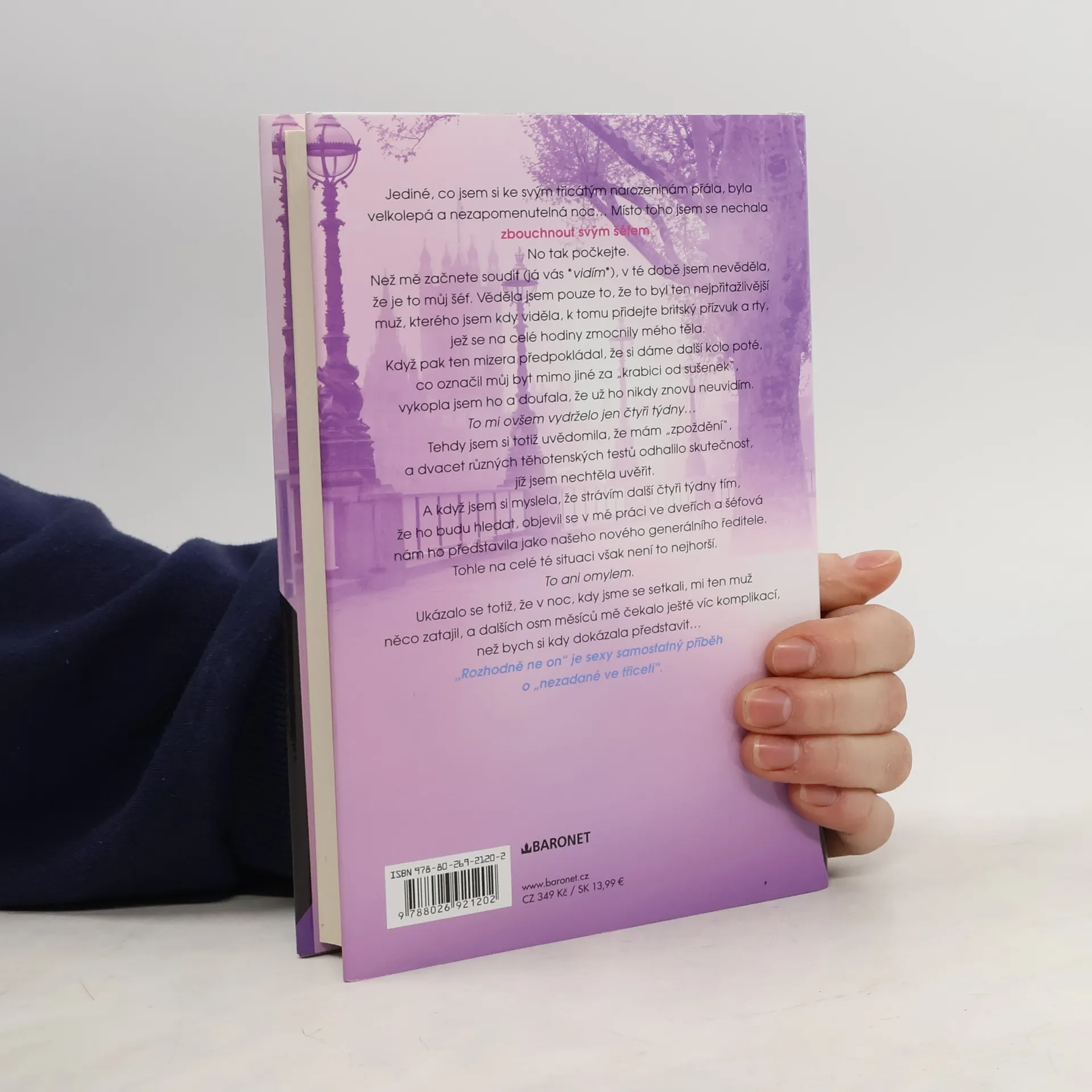 Jediné, co jsem si ke svým třicátým narozeninám přála, byla velkolepá a nezapomenutelná noc… Místo toho jsem se nechala zbouchnout svým šéfem. No tak počkejte. Než mě začnete soudit (já vás *vidím*), v té době jsem nevěděla, že je to můj šéf. Věděla jsem pouze to, že to byl ten nejpřitažlivější muž, kterého jsem kdy viděla, k tomu přidejte britský přízvuk a rty, které se na celé hodiny zmocnily mého těla. Když pak ten mizera předpokládal, že si dáme další kolo poté, co označil můj byt mimo jiné za „krabici od sušenek“, vykopla jsem ho a doufala, že už ho nikdy znovu neuvidím. To mi ovšem vydrželo jen čtyři týdny… Tehdy jsem si totiž uvědomila, že mám ‚zpoždění‘ a dvacet různých těhotenských testů odhalilo skutečnost, jíž jsem nechtěla uvěřit. A když jsem si myslela, že strávím další čtyři týdny tím, že ho budu hledat, objevil se v mé práci v dveřích, a nadřízený nám ho představil jako našeho nového generálního ředitele. Tohle na celé té situace však není to nejhorší. To ani omylem. Ukázalo se totiž, že v noc, kdy jsme se setkali, mi ten muž něco zatajil, a dalších osm měsíců mě čekalo ještě víc komplikací, než bych si kdy dokázala představit…