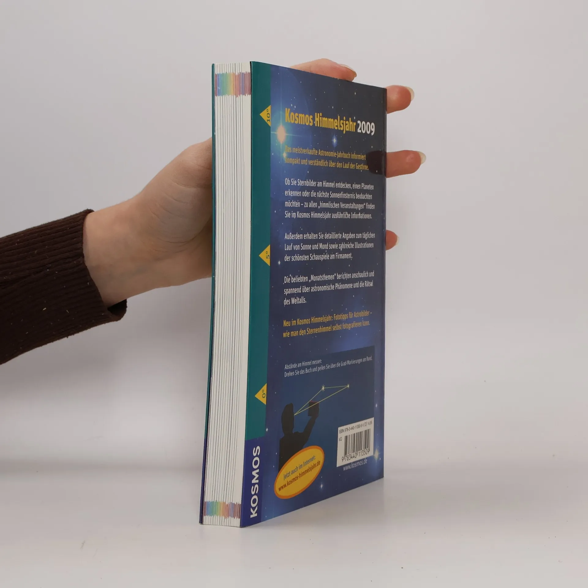 Das führende Astronomie-Jahrbuch informiert kompakt und leicht verständlich über den Lauf der Gestirne: Kalendarische Angaben bieten wichtige Daten im Überblick, u. a. zum Beginn der Jahreszeiten, zu Feiertagen und Finsternissen. Der Mondlauf nennt für jeden Tag des Jahres die genaue Mondphase sowie Auf- und Untergangszeiten. Planeten und Sternbilder werden im monatlichen Überblick vorgestellt, außerdem besondere Ereignisse am Firmament. Die Monatsthemen berichten anschaulich und spannend über astronomische Phänomene und die Rätsel des Weltalls. Ob Naturbeobachter, Hobby-Astronom, Jäger, Segler oder Architekt: Das Kosmos Himmelsjahr bietet alle Informationen zum Himmelsgeschehen in besonders übersichtlicher und anschaulicher Form.