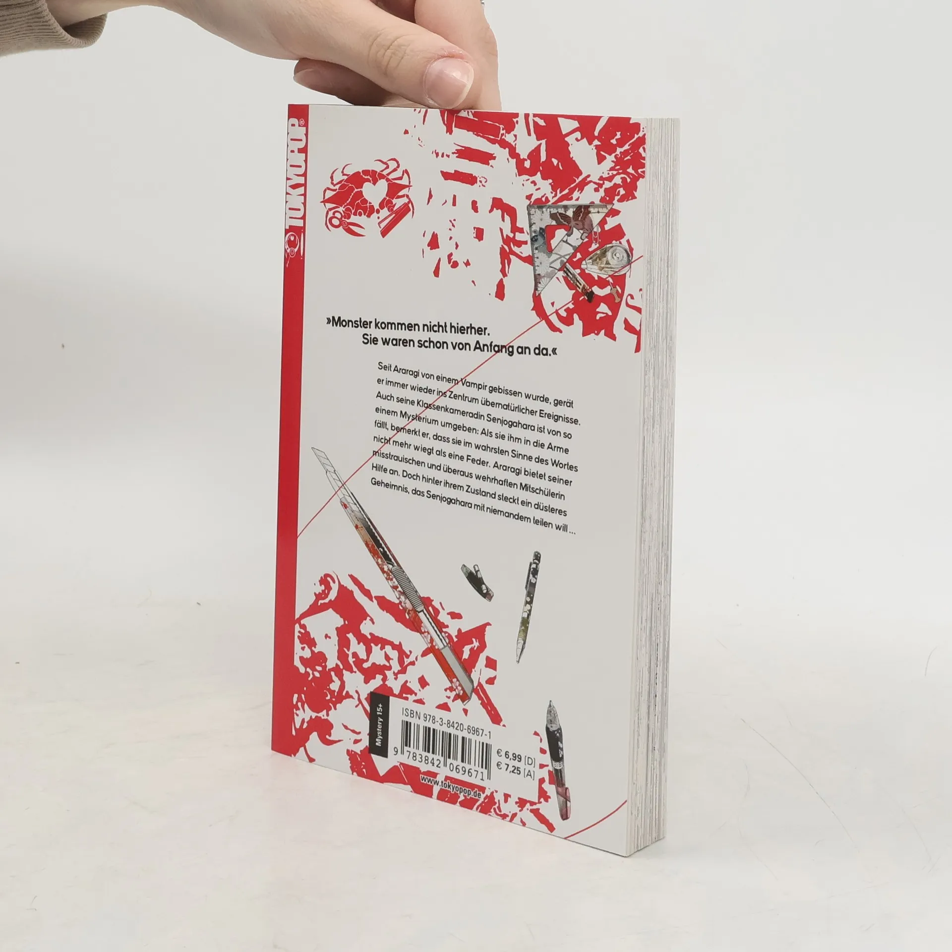 Seit Araragi von einem Vampir gebissen wurde, gerät er immer wieder ins Zentrum übernatürlicher Ereignisse. Auch seine Klassenkameradin Senjogahara ist von so einem Mysterium umgeben: Als sie ihm in die Arme fällt, bemerkt er, dass sie im wahrsten Sinne des Wortes nicht mehr wiegt als eine Feder. Araragi bietet seiner misstrauischen und überaus wehrhaften Mitschülerin Hilfe an. Doch hinter ihrem Zustand steckt ein düsteres Geheimnis, das Senjogahara mit niemandem teilen will ...