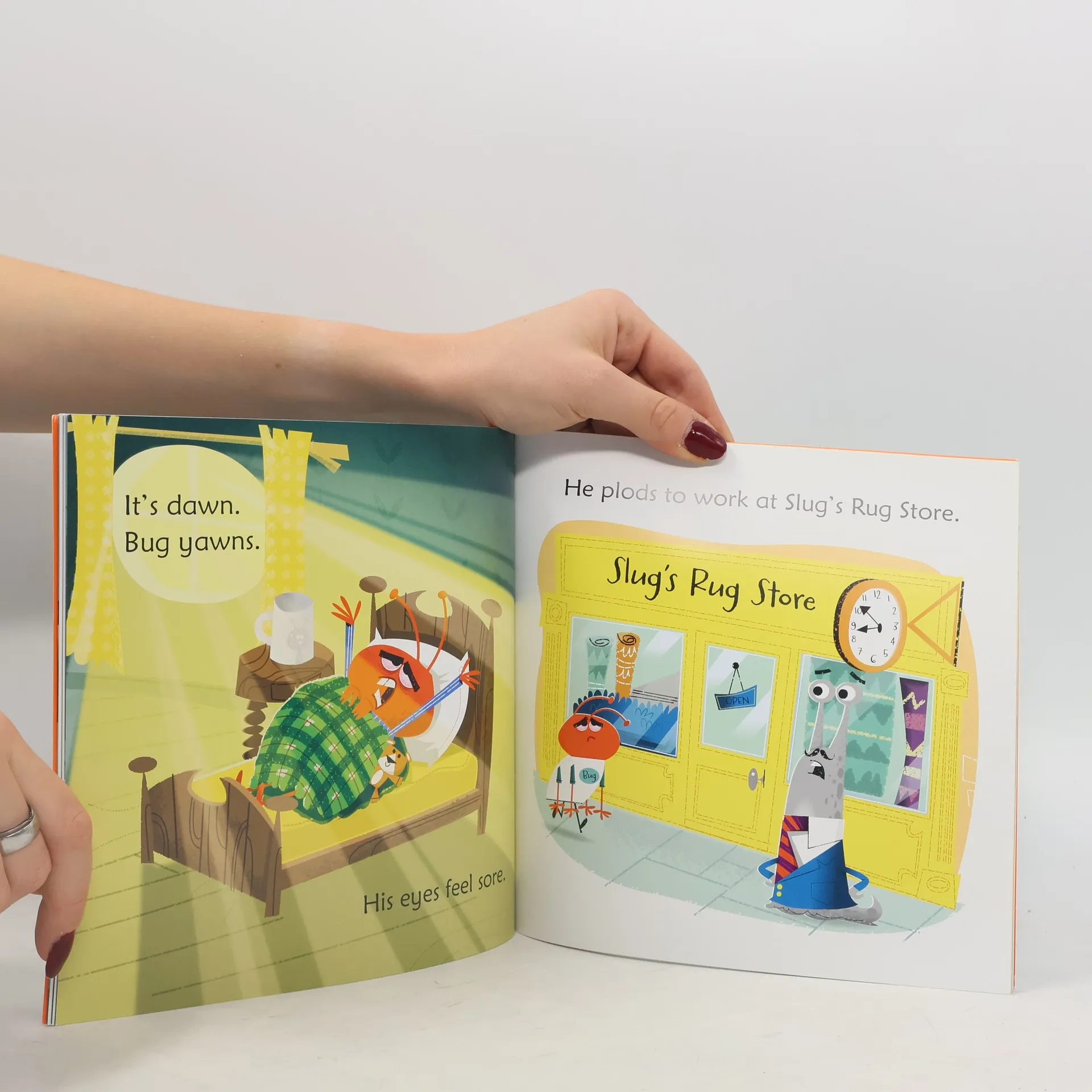 New title in the Phonic Readers series A lively story with simple rhyming text and irresistible illustrations, specially written for young children who are learning to read. “I need my sleep tonight,” says Bug. “Tomorrow I start work for Slug.” Bug glugs hot chocolate from a mug. Then snuggles up inside his rug. Simple, rhyming text helps children to develop essential language and early reading skills, and there are guidance notes for parents at the back of the book.