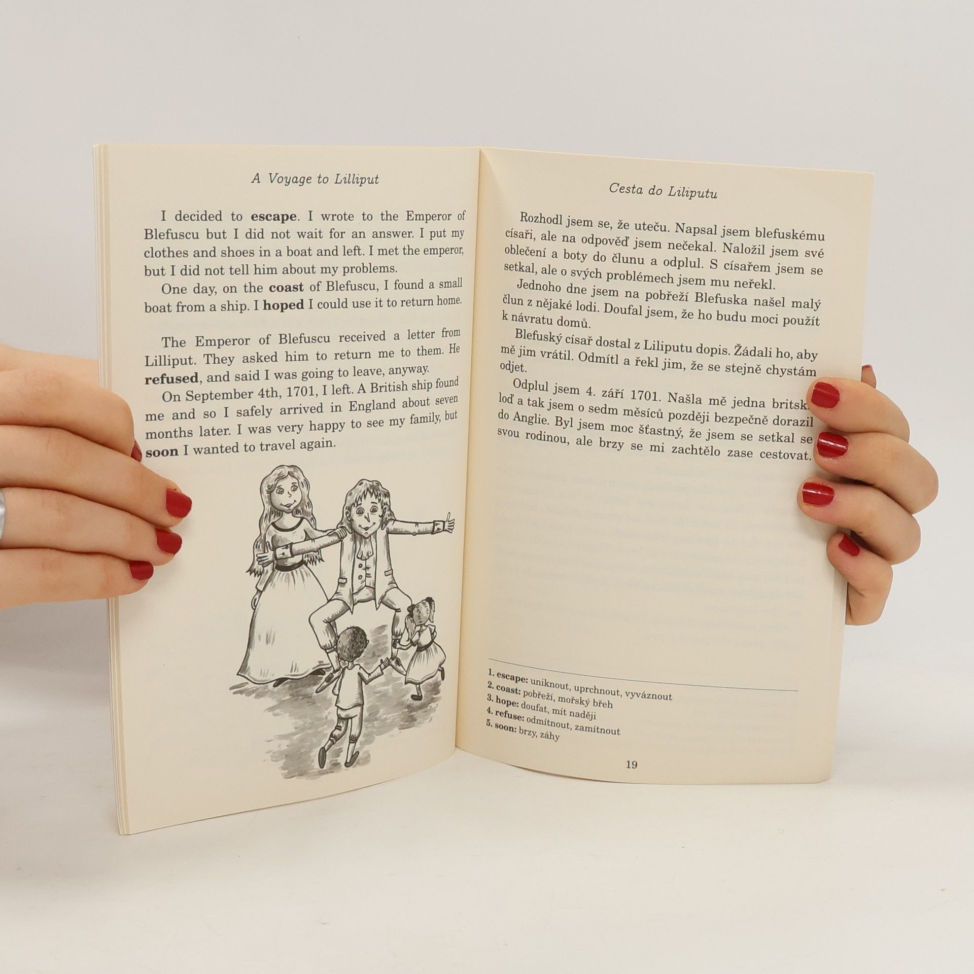 Četba pro začátečníky - Gulliver's Travels (Gulliverovy cesty) (A1 - A2). Satira lidského charakteru a okouzlující fantastický příběh Gulliverovy cesty je nejslavnějším dílem Jonathana Swifta. Vypráví příběh Angličana Lemuela Gullivera, který cestuje po exotických zemích v nichž se setkává s nezapomenutelnými postavami, od maličkých Liliputánů až po obří obyvatele Brobdingnagu, a dostává se do mnoha legračních i ošidných situací. A satire of human nature and enchanting tale of fantasy, “Gulliver’s travels”, is Jonathan Swift’s most famous work. It tells the story of an Englishman, Lemuel Gulliver, who journeys to exotic lands filled with unforgettable characters, from the miniature Lilliputians to the giant Brobdingnagians, and finds himself in a number of amusing and precarious situations.