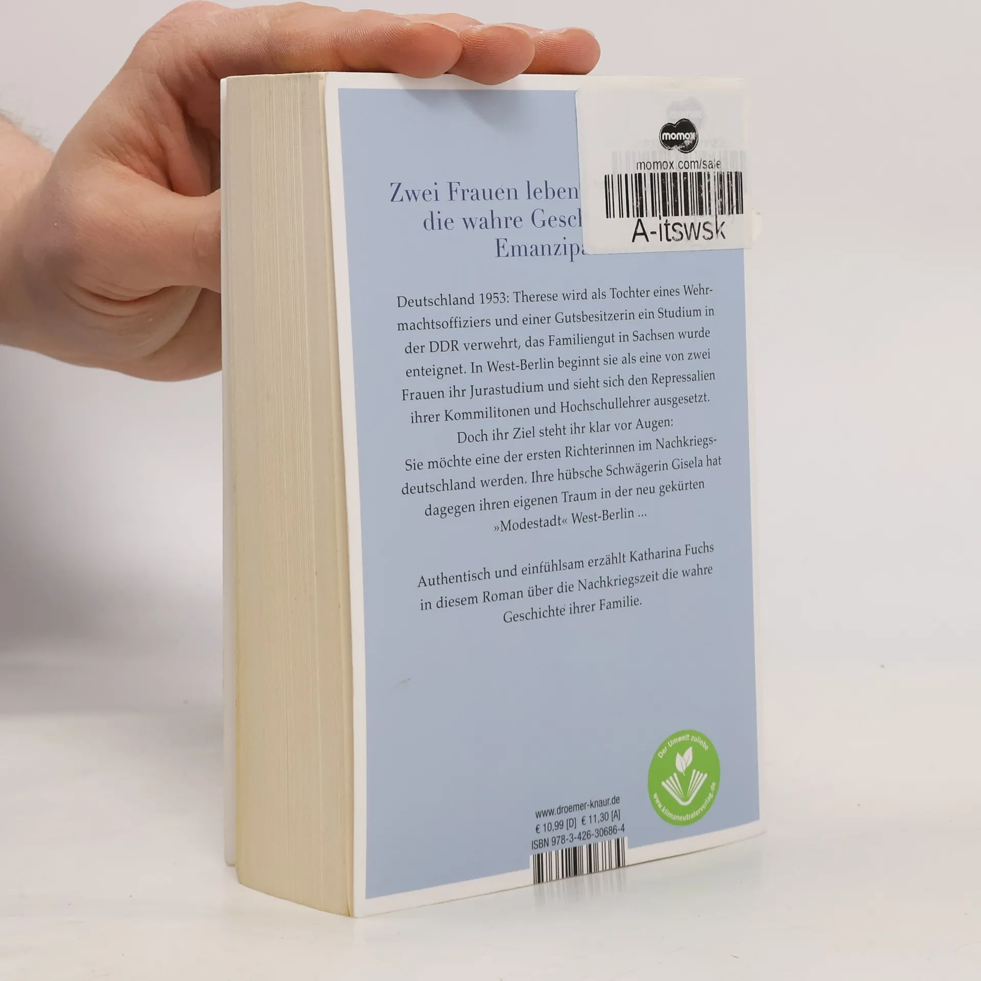 Zwei Frauen leben ihren Traum – gegen alle Widerstände der 50er Jahre. In diesem Roman erzählt Katharina Fuchs authentisch und einfühlsam die wahre Geschichte ihrer Tante, einer der ersten Vorsitzenden Richterinnen Deutschlands, und ihrer Mutter, einer Modemacherin in West-Berlin. Therese Trotha, Tochter eines Wehrmachtsoffiziers und einer Großgrundbesitzerin in der DDR, darf in den 50er Jahren nicht studieren und zieht nach West-Berlin. Dort erlebt sie, wie die wachsenden Unterschiede zwischen Ost und West ihre Familie auseinanderbrechen. Ihr Jura-Studium wird durch konservative Professoren und Kommilitonen erschwert. Verständnis für ihre Träume findet sie nur bei ihrer Schwägerin Gisela, die ebenfalls aus ihrer Rolle fällt: Die Schneiderin aus einfachen Verhältnissen möchte in der neu gekürten „Modestadt“ West-Berlin ihre eigene Modelinie entwickeln, anstatt sich mit einer traditionellen Hausfrauen-Ehe zufriedenzugeben. Katharina Fuchs fängt die Leben und Träume von Frauen in den 50er Jahren ein und verarbeitet sie zu einem bewegenden Roman über die Nachkriegszeit. Mit viel Liebe zum Detail lässt sie Zeitgeschichte und die Schicksale dieser beiden Frauen lebendig werden, während sie auch die wahre Geschichte ihrer Großmütter erzählt, die zwei Weltkriege überstehen mussten.