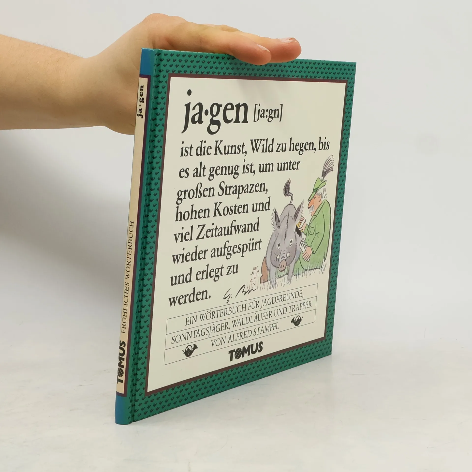 ja.gen ist die Kunst, Wild zu hegen, bis es alt genug ist, um unter großen Strapazen, hohen Kosten und viel Zeitaufwand wieder aufgespürt und erlegt zu werden. - bk1755; Tomus Verlag; Alfred Stampfl; Paperback; 1984
