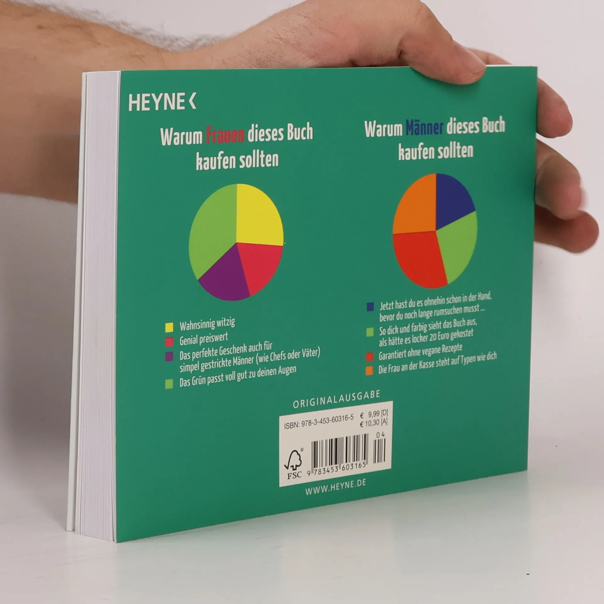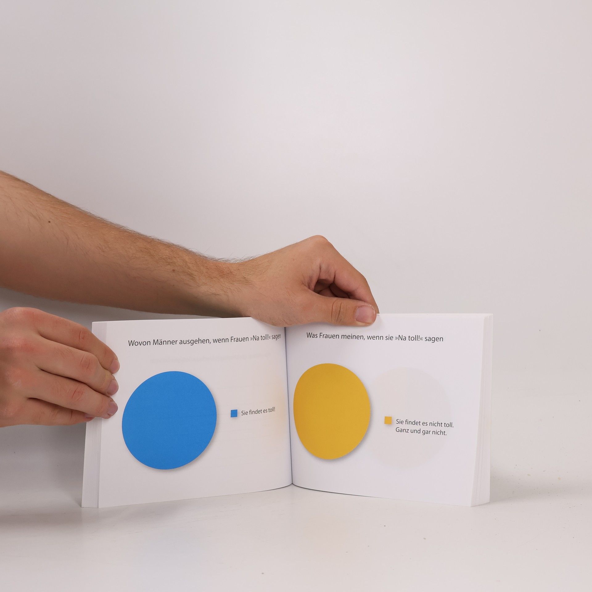 Wie viele Grüntöne kann das weibliche Auge unterscheiden, wie viele das männliche? Was rührt Männer zu Tränen und was Frauen? Und welche Geschenke bekämen Männer gerne, wenn Frauen sagen, es gebe wirklich gar nichts, was man ihm noch schenken könnte? Nach den Bestsellerhits »Was wir tun, wenn der Aufzug nicht kommt« und »Was wir tun, wenn es an der Haustür klingelt« gibt es jetzt neue witzige Tortendiagramme und Grafiken, die uns die kleinen Unterschiede zwischen Männern und Frauen erklären – ein Buch zum pausenlosen Nicken und Lachen! Ausstattung: durchgehend 4c